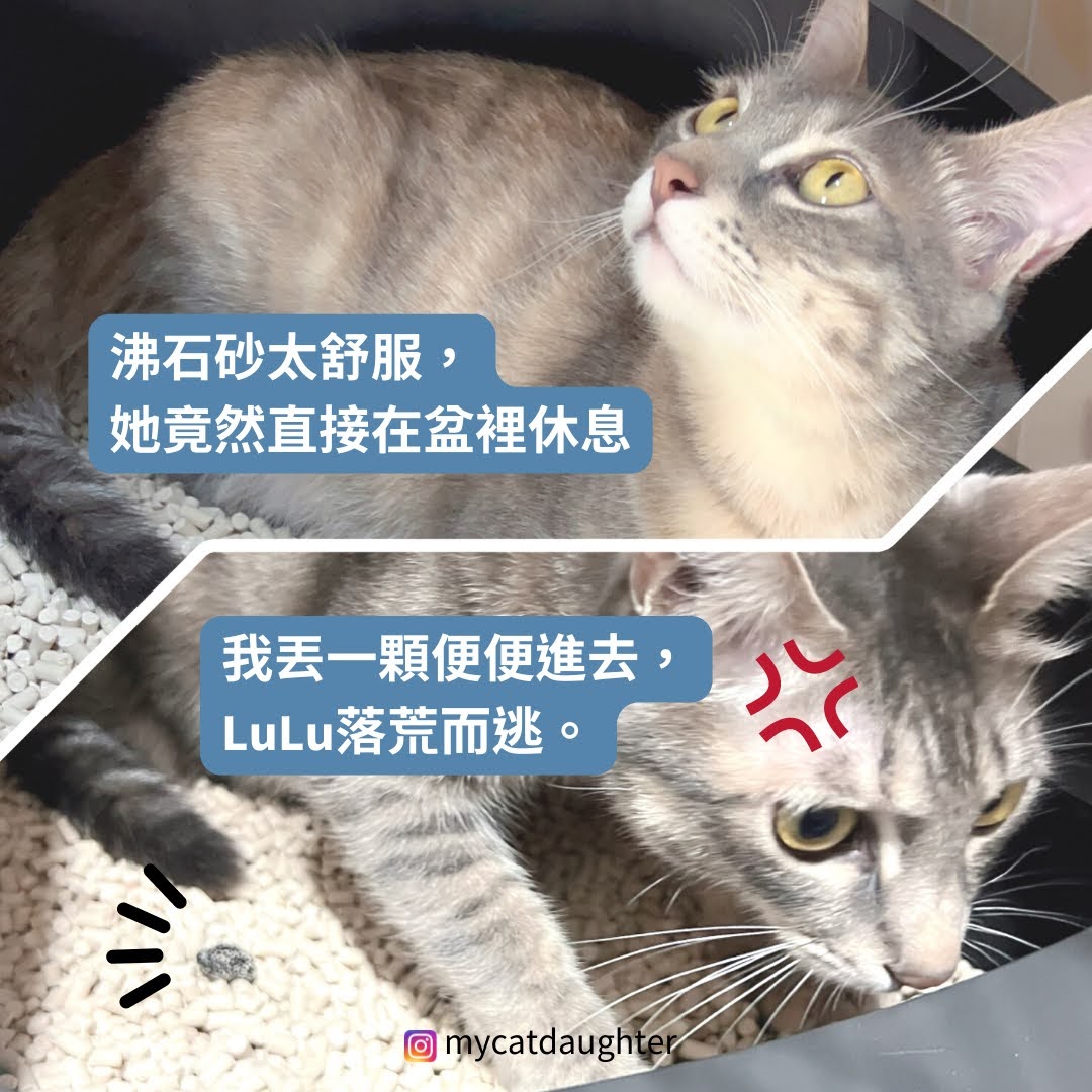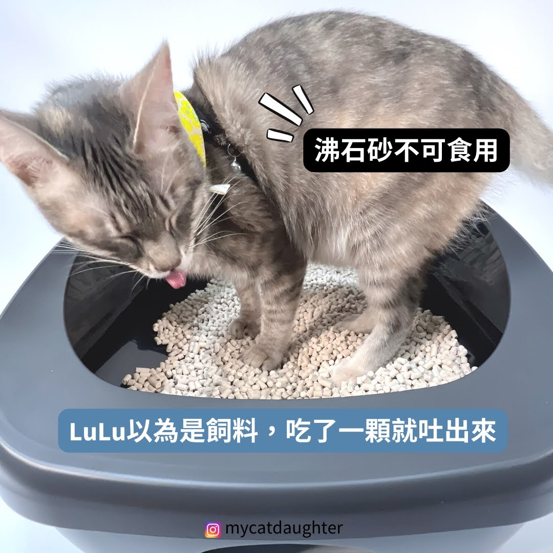不管是什麼砂一定會被LuLu帶出砂盆,沸石砂用手撿就可以了,而且沸石砂低粉塵免掃地🧹,打掃起來很輕鬆一點也不「費時」!