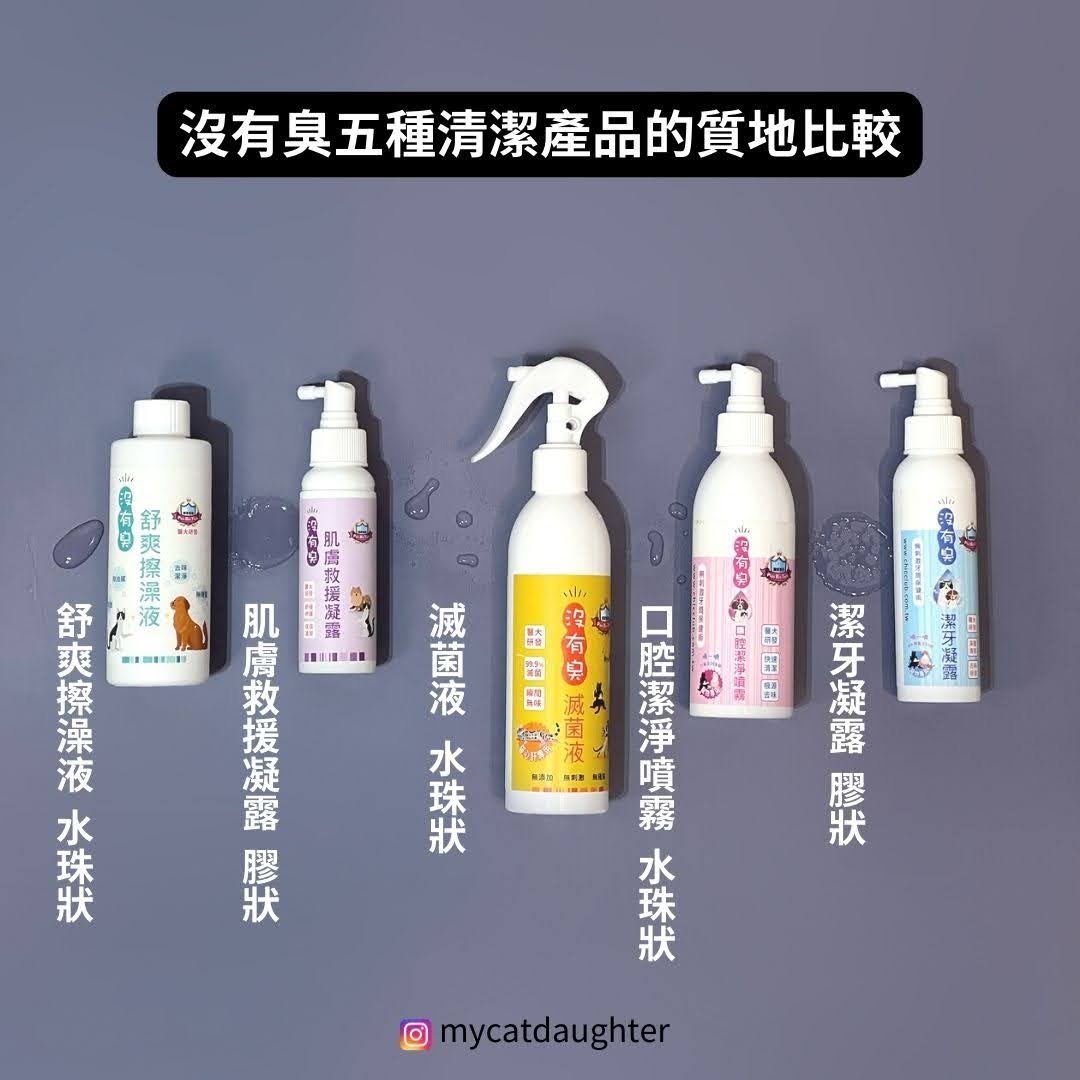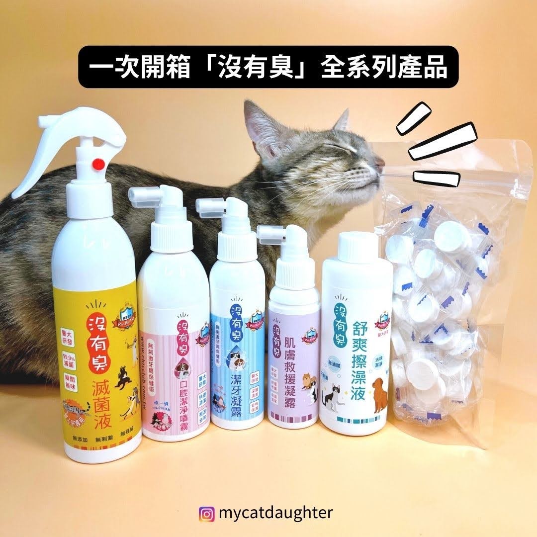 LuLu吃了鯖魚口味的罐罐,我都會不太想抱她🤣,就跟我吃了臭豆腐她不想靠近我一樣,這時候就可以拿出法寶✨「口腔潔淨噴霧」✨囉!讓張開嘴巴噴一噴,很快就「沒有臭」,有好的牙齒才能健康長壽,為了讓毛孩陪我們久一點,從小就要認真刷牙才不會造成蛀牙或牙結石!我的做法是把✨「潔牙凝露」✨噴在小碟子上,用刷牙指套沾一點,塗抹在卯咪的牙齒與牙齦上,當然舌頭也可以清潔,只要她願意…這兩個產品搭配使用效果更佳,我認為可以從簡單一點的「口腔潔淨噴霧」入手,畢竟只要噴一噴就可以達到清潔除臭的效果超級方便!而且也不用擔心噴到貓咪狗狗眼睛,因為沒有臭全系列產品都是無毒不刺激皮膚和眼睛,即使有傷口也不刺激,這個LuLu麻麻感觸頗深,手上有傷口是家常便飯😂,真的沒有刺激的啦~