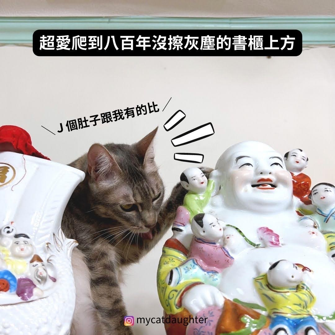 LuLu愛探險的精神,從她到我家以後就沒消停過,經常在家裡灰塵積累超多的地方鑽來鑽去,尤其是書櫃頂上,電視櫃下方,這些都是我們八百年才擦一次的地方🤦🏻♀️;每次她探險完回到書房討食,鬍鬚上都帶著灰塵,如果她是一隻白貓,那肯定是全身髒兮兮,還好她有天然保護色「灰色」,因此我們也偶爾叫綽她「灰塵貓」🙀。