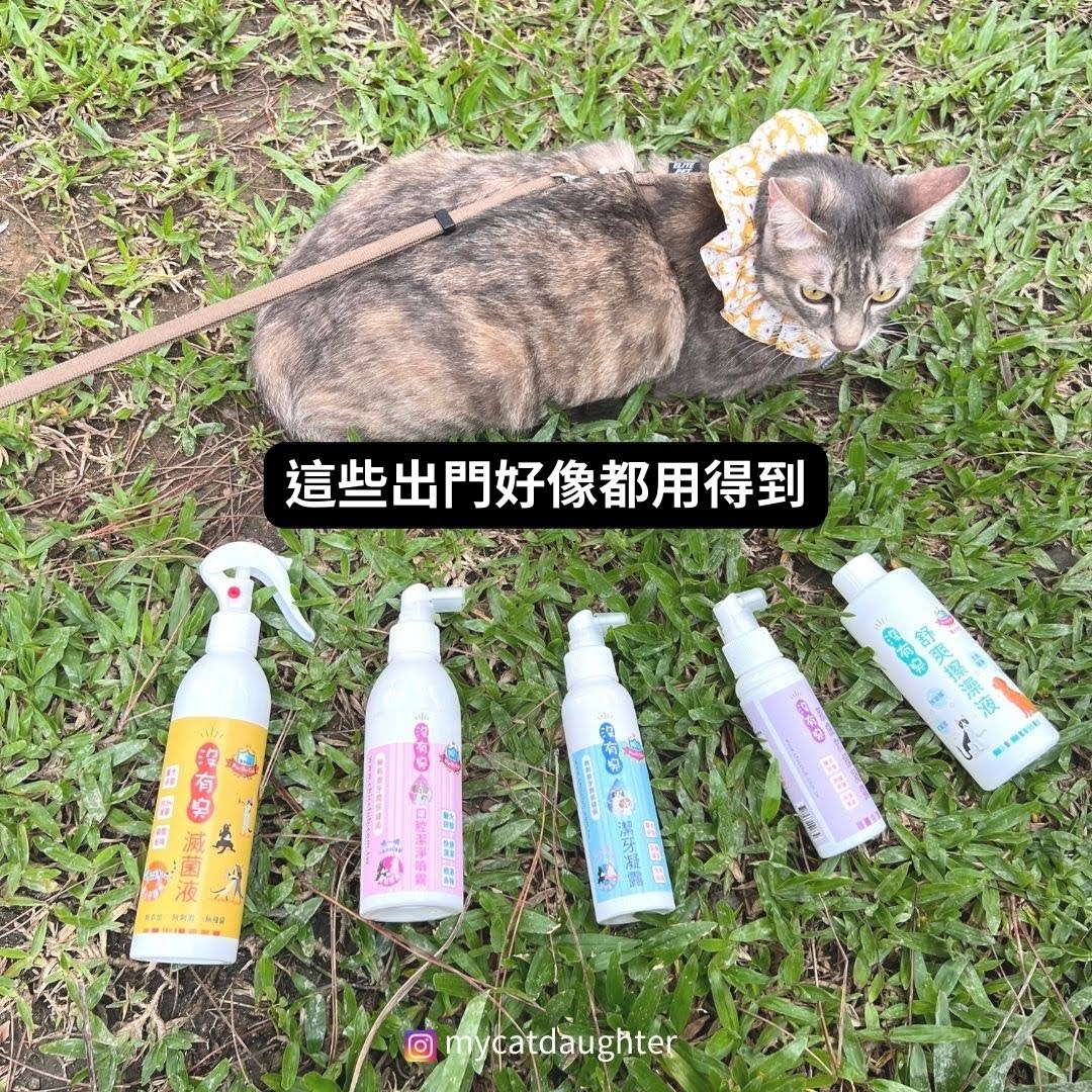 出門逛逛超棒噠~但可能在不知不覺中被細菌(黴菌、白色念珠菌等)附體,因此包包、牽繩都要常消毒!犬貓都不可接觸觸酒精、漂白水等刺激性的清潔用品,因此沒有臭系列的✨「滅菌液」✨是毛孩家長的好幫手,寵物可接觸,無毒不刺激不殘留!抑菌效果99.99%,滅菌的過程順便幫我們消除寵物分泌物或排泄物與細菌作用而產生的異味,超棒噠~這一罐250ml生活環境皆可使用,作用後還原成水,不殘留有害物質,對環境無害。我常常拿來東噴西噴,舉凡:貓砂盆、睡墊、玩具、外出袋…想到就噴一噴,甚至小孩上完廁所都拿去噴噴看,不過還是噴貓砂效果比較好。