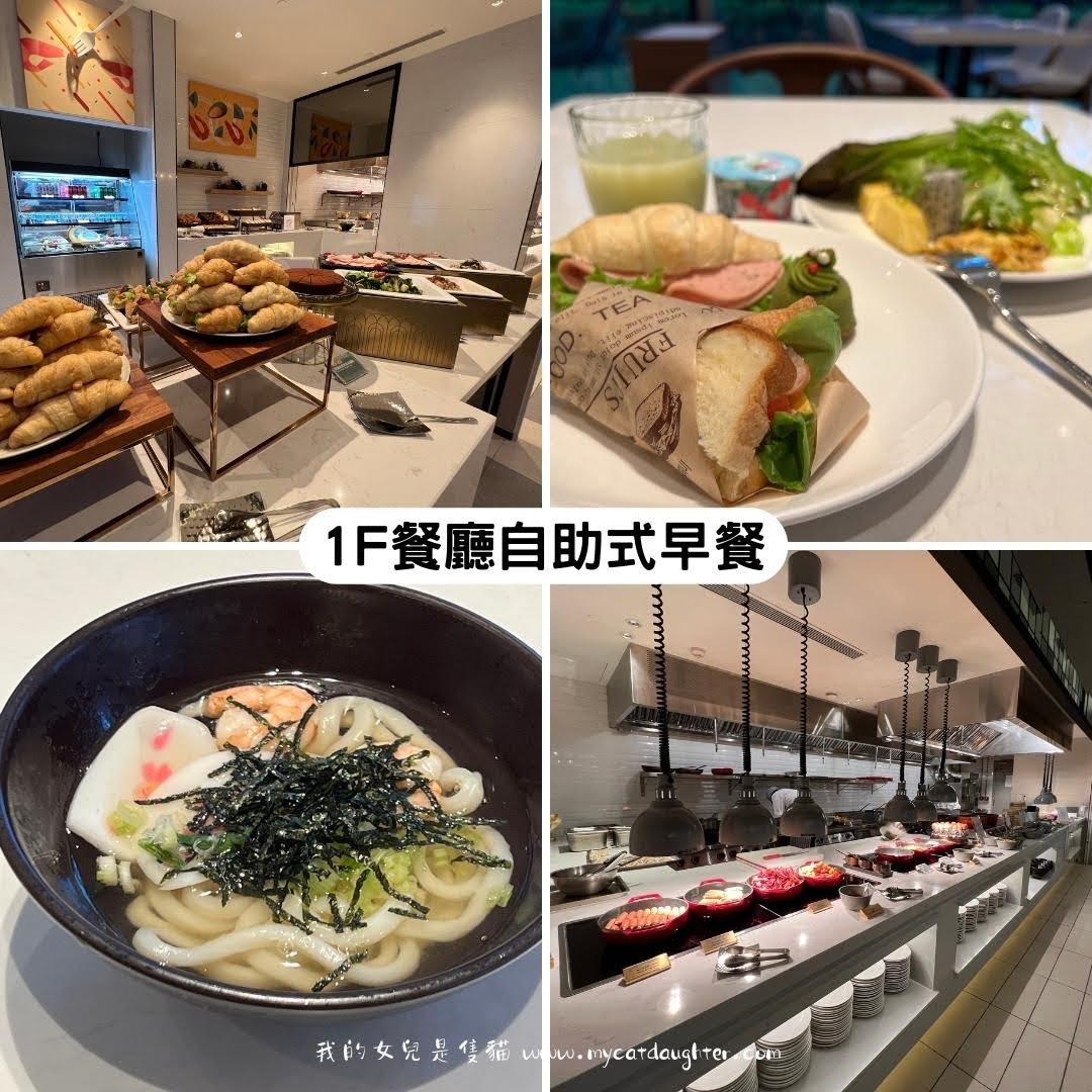 我自己一早6:30就先去吃早餐,早餐的菜色精緻樣式種類也豐富,我特別喜歡吃烏龍麵,湯頭很清甜,有好幾種新鮮果汁,芭樂汁超好喝!