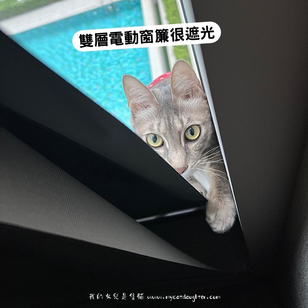 貓則是早就睡飽了,一下躲在窗簾後面看泳池戲水的人,一下在房間裡面飛來飛去玩瘋掉。![]()