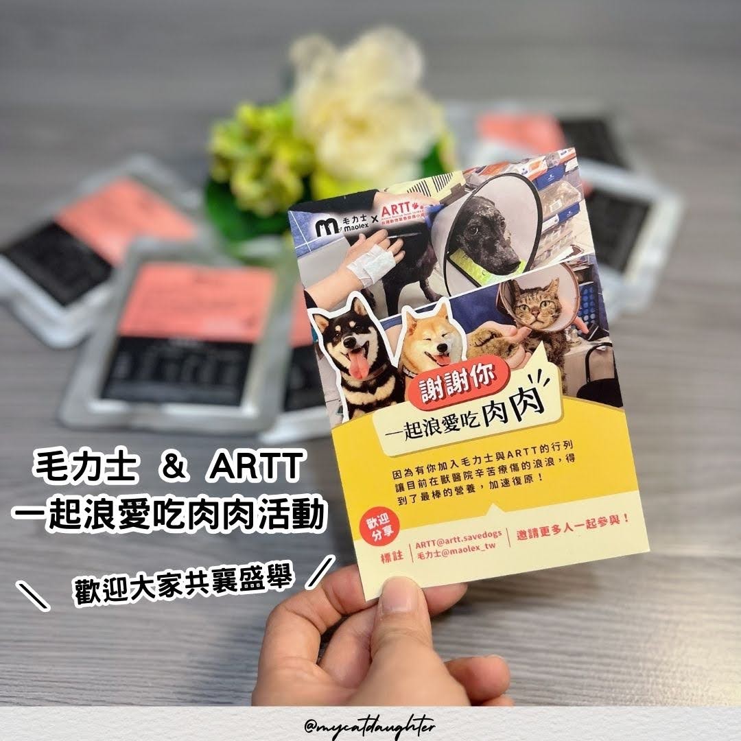 毛力士與ARTT(台灣動物緊急救援小組) 舉辦『浪愛吃肉肉 毛力士幫你捐』的愛心活動,要將毛力士優質營養成分的主食餐包贈送給ARTT營救回來的傷病犬貓,讓浪浪們可以在術後得到最好的營養,重拾健康與活力,迎向嶄新美好的毛生!
