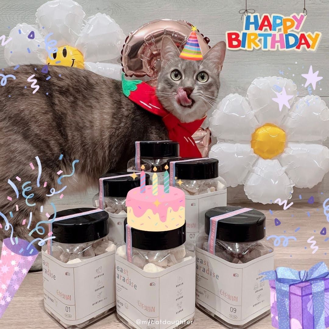 讓LuLu品嚐美味「毛怪犬貓凍乾」當生日大餐。