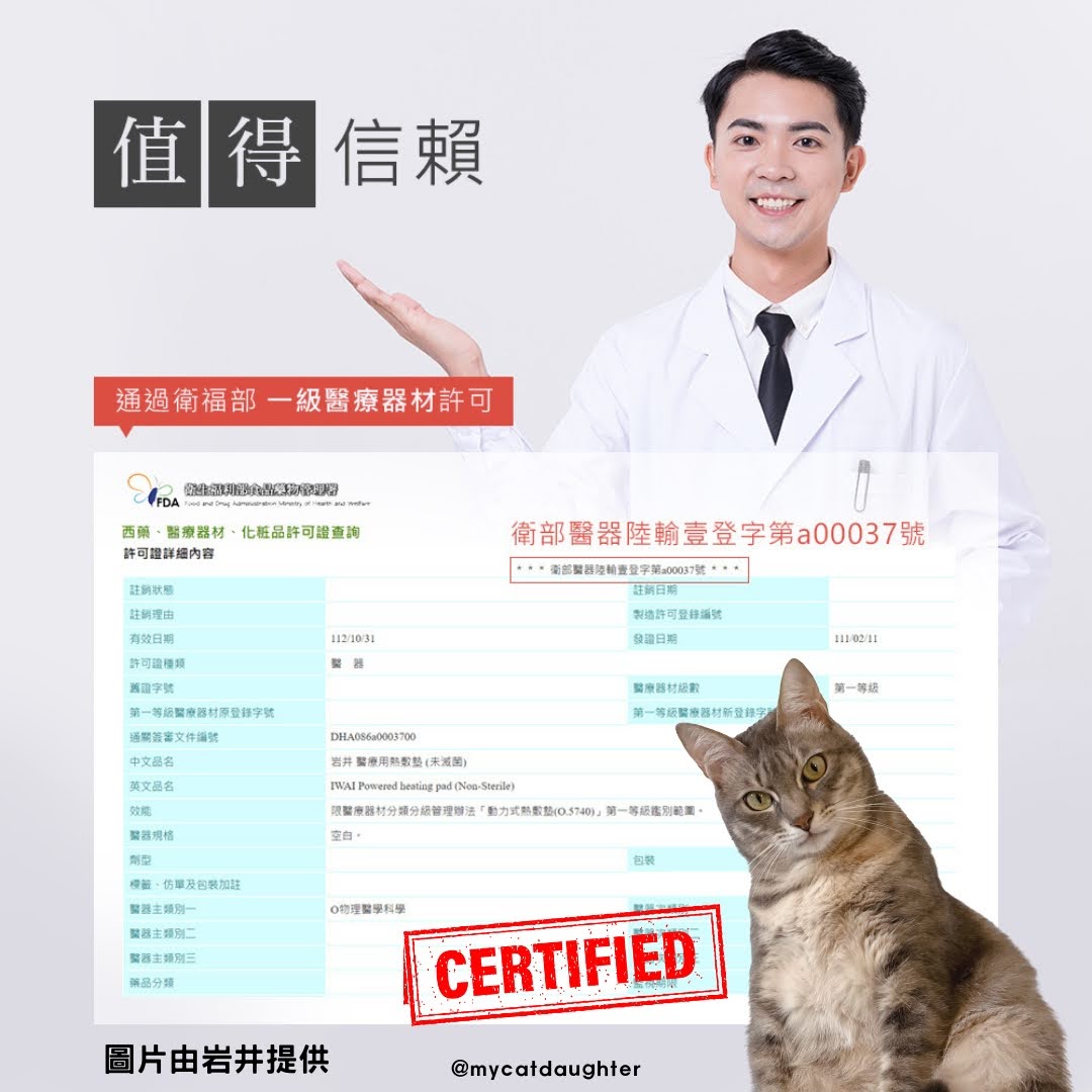 獲得官方許可證:衛部醫器陸輸壹登字第a00037號