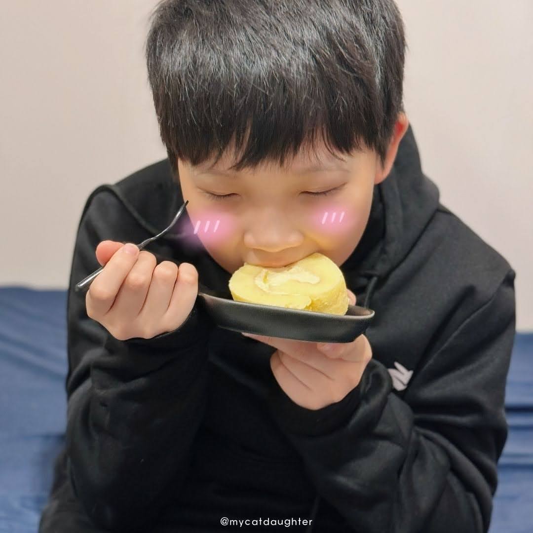 最後輪到吃提拉米蘇,小葛格跟貓玩了一會兒,胃總算有空間囉!他吃了三分之一還誇獎說很好吃,要帶一塊回去給大葛格吃,我把剩下的蛋糕吃掉,提拉米蘇經典綿密的口感,蛋糕體綿軟、內餡香濃飽滿,是愛吃蛋糕的大葛格會喜歡的口味,我們下樓問店員,剛好還有一盒可以外帶,外帶蛋糕做得很精緻,我還帶了一份沒吃過的原味奶凍卷給朋友。