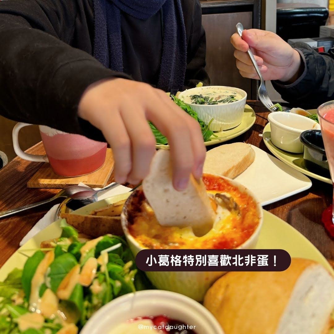 小葛格非常喜歡我的北非蛋,他說沾麵包吃好像Pizza,說著說著就把我的北非蛋吃光光???
