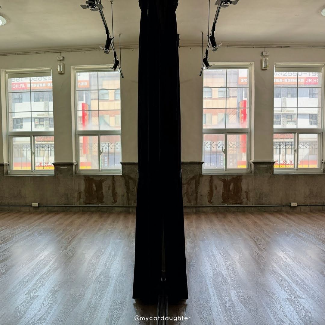 天花板是工業風無裝潢,高度目測超過三米,以下為麻麻自行腦補畫面:裝上空中瑜珈的掛布或是空中環,利用古宅窗戶透進來的天然光源拍攝空中舞者背光剪影畫面,舊時光的韻味十足唯美!