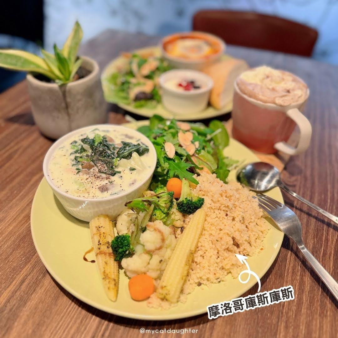 套餐有:有肉丸番茄應嘴豆燉菜、義式烤蔬菜、庫斯庫斯。