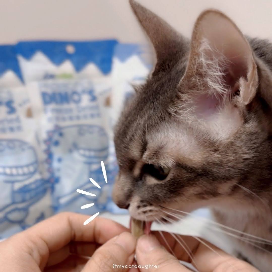 我曾試過拿木天蓼棒棒讓LuLu啃咬潔牙,她反應普通,反倒是對媽媽的手背比較有感覺?