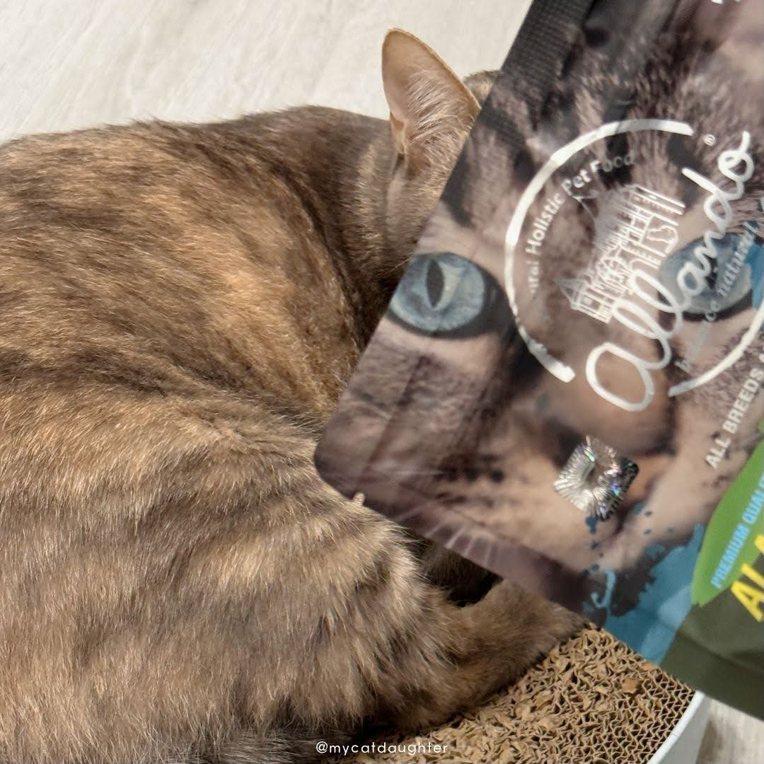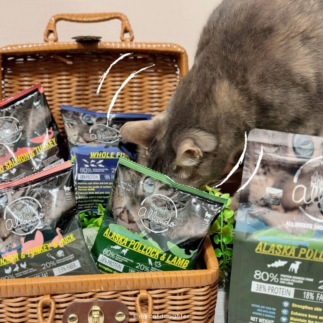 奧蘭多天藍無穀貓糧可幫助排毛且適口性高,不用混合原乾乾就吸引LuLu直接來吃;第二天拍完照我就把剩下的乾乾都混合在一起,隔天剩下都被LuLu當零食吃光了。