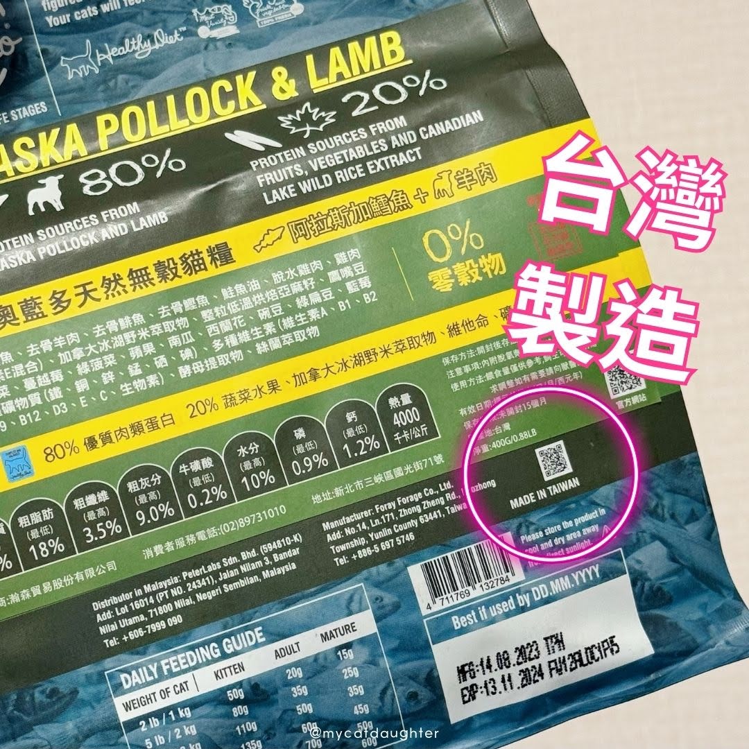 奧蘭多的飼料主要有四種規格包裝400g、1.2kg、2.7kg、6.8kg,未拆封保存期限15個月,等庫存飼料吃完我會想要入手2.7kg的包裝來跟其他品牌搭配,如果沒吃過奧蘭多飼料,或是家裡的貓咪腸胃比較敏感,可以從1.2kg入手,再直接買大包裝比較划算喔!
