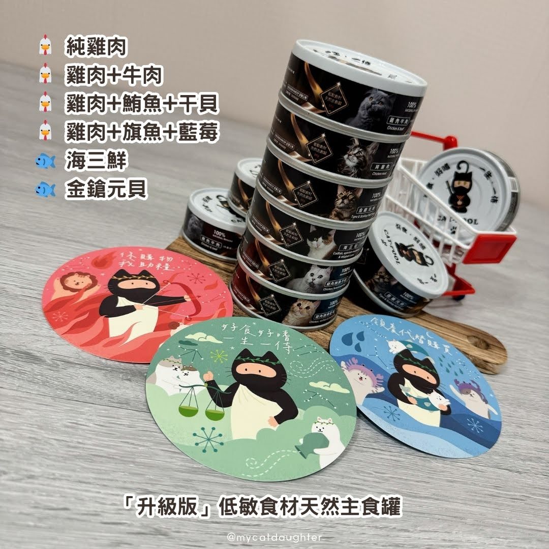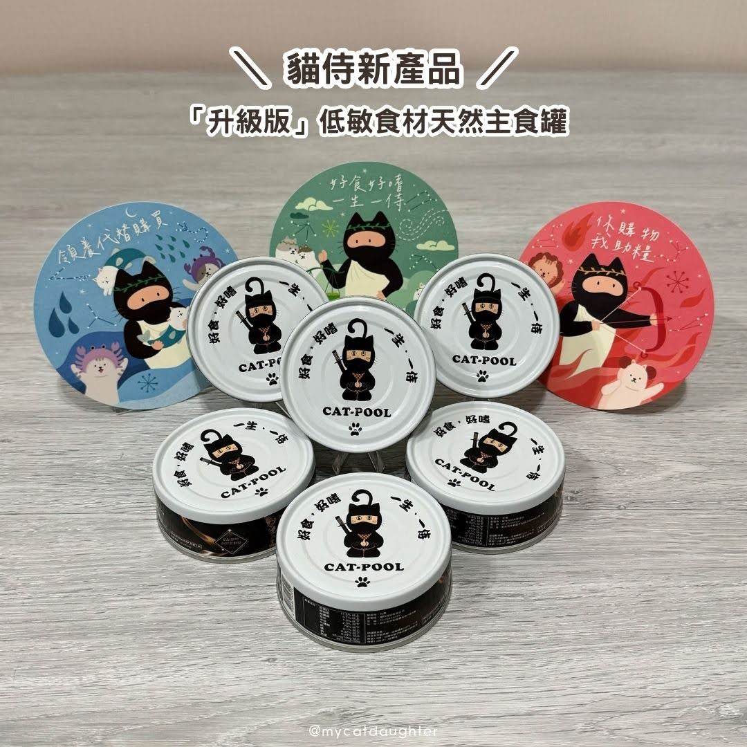 貓侍新產品「升級版低敏食材天然主食罐」,每罐80G,有六種口味,