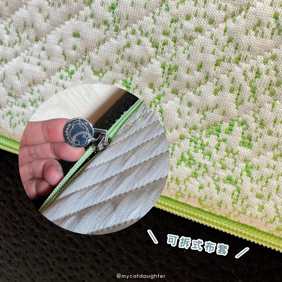 如果喜歡冰絲涼感科技布套卻又想要包覆躺感覺,那就自己拆開來換?有別於傳統床墊無法清洗,好睡象雙面躺感適壓床墊的布套是可以拆下來洗的唷!床墊中間有一道綠色的拉鍊拉開,布套就可以整個拆下來洗,如果不小心被貓咪嘔吐或是幫嬰兒換尿布卻失手弄髒床,整個布套都可以拆下來洗才乾淨。
