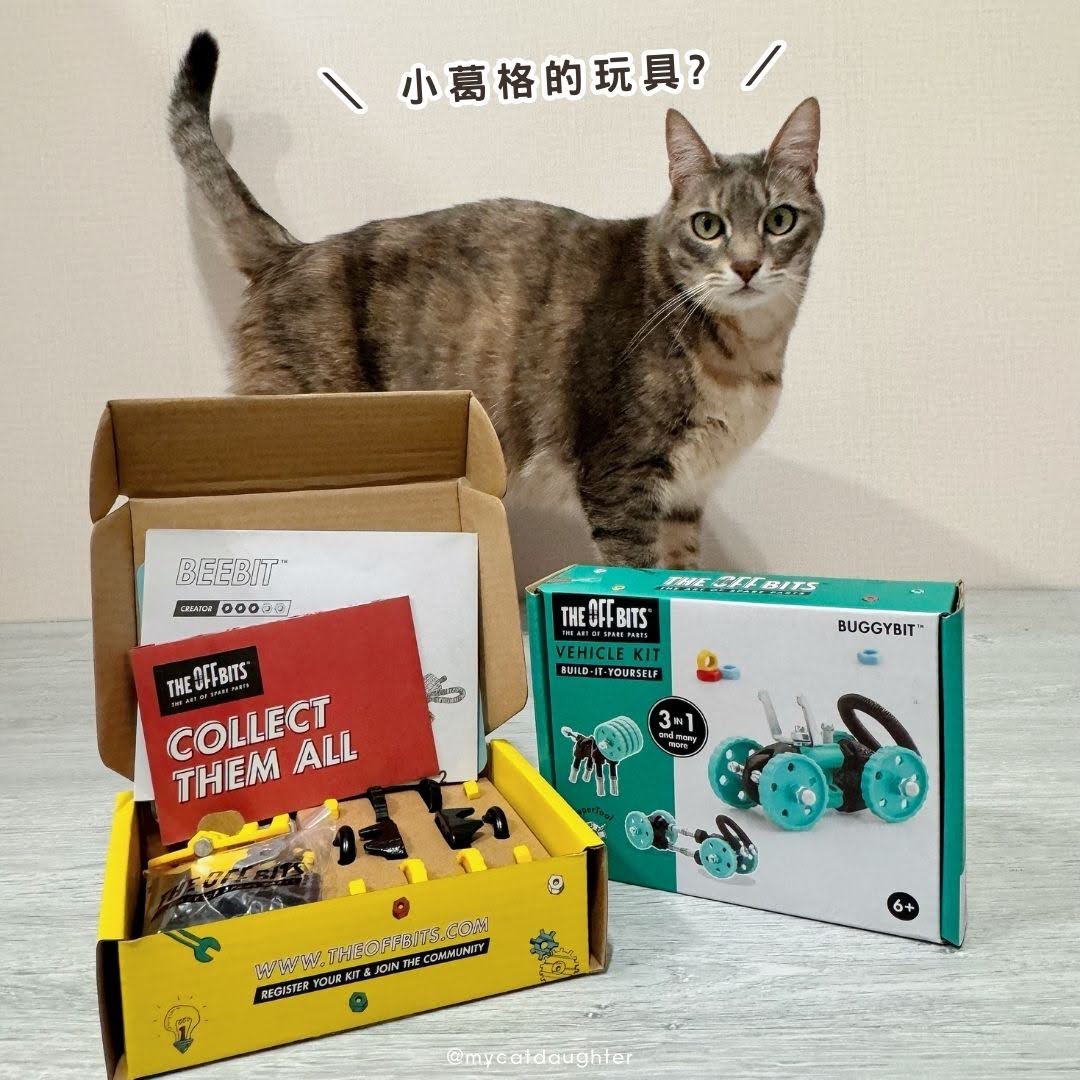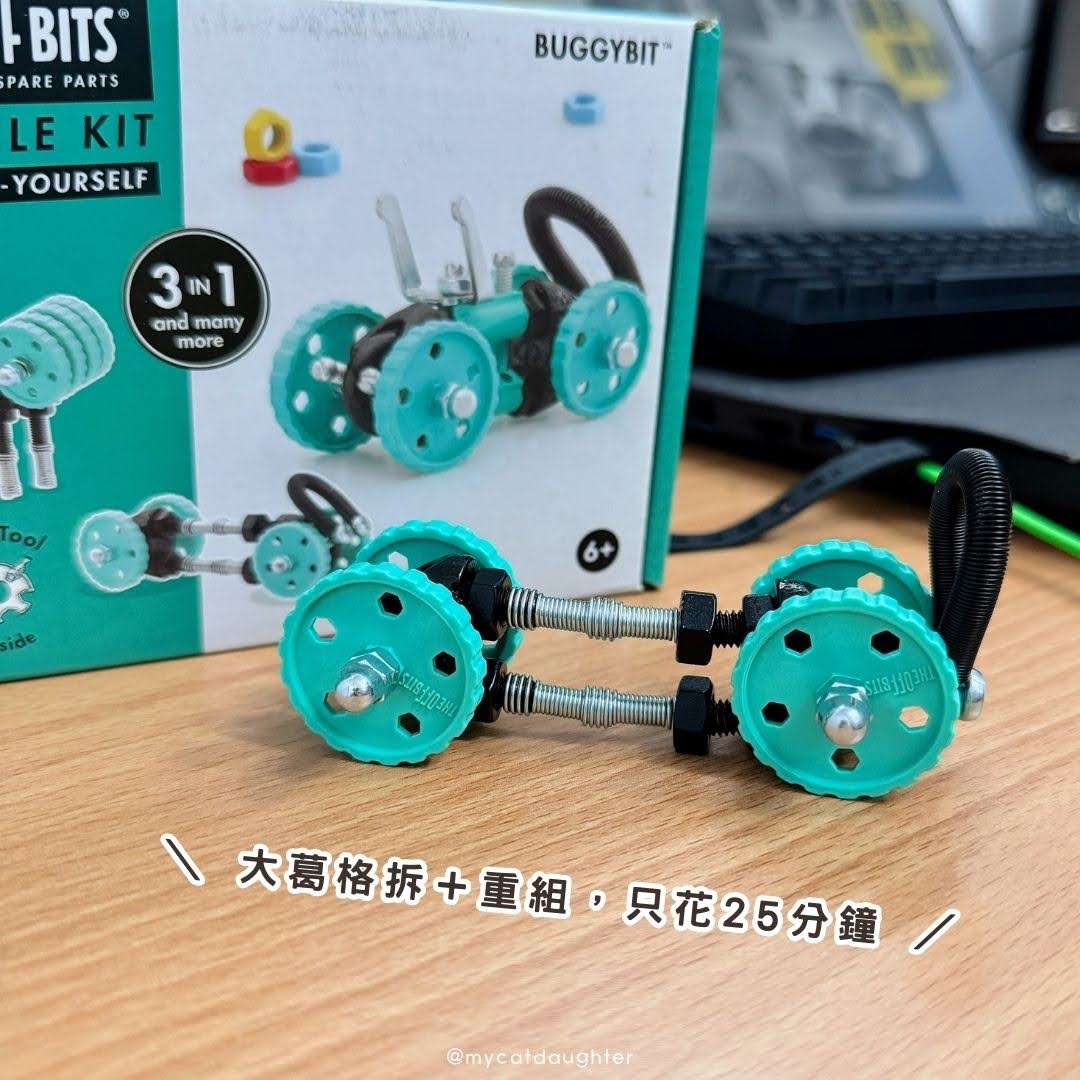 假日和朋友一起旅行,我就帶著兩盒以色列TheOffBits機械積木,讓不能玩3C的小葛格有些娛樂,他選擇先玩越野車,我請他試著按照說明書組成一個型態。
