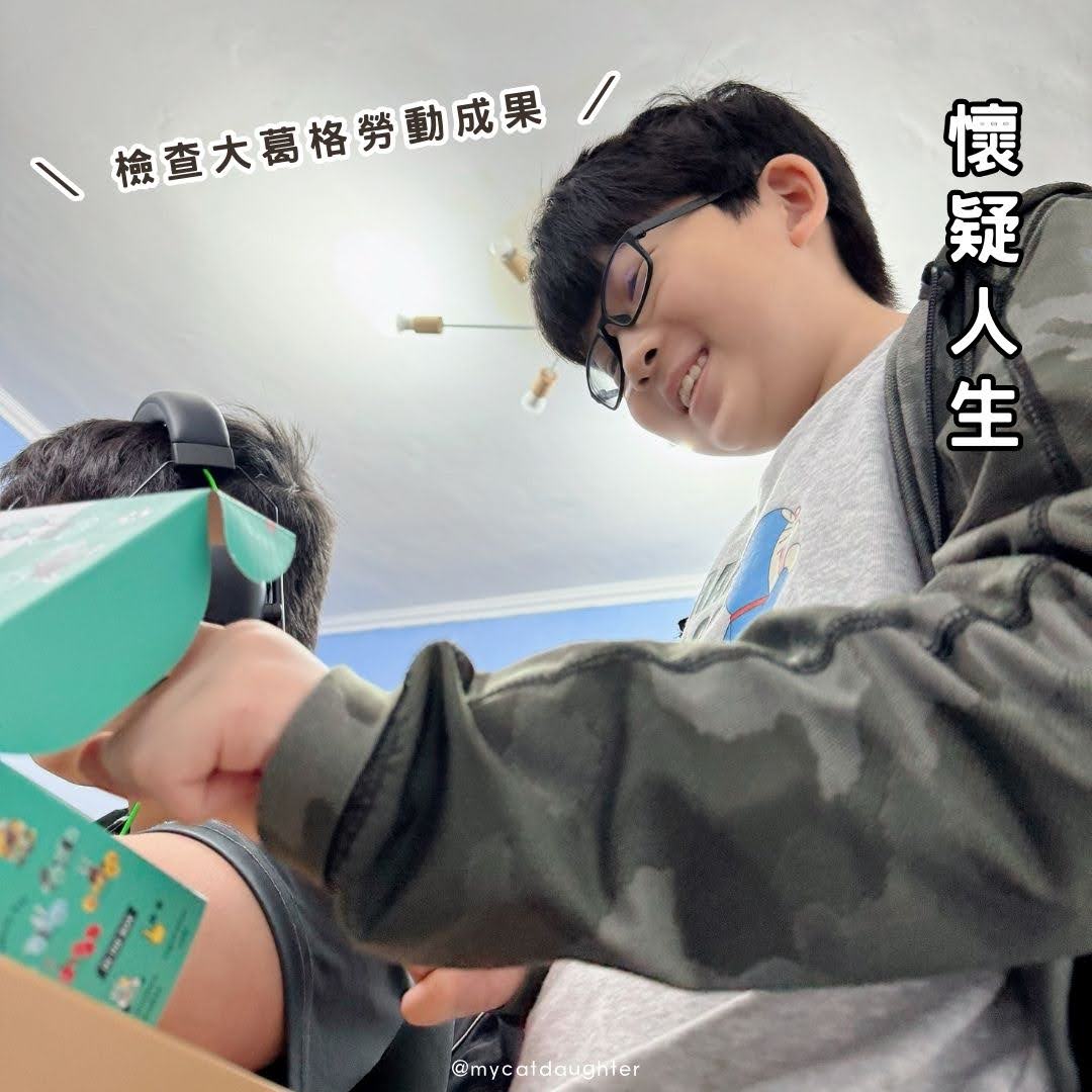 大葛格看到弟弟玩得很起勁,有時也會拿起來玩一玩,雖然大葛格已經不是兒童,但還是能一起玩這套組合建構玩具分享過程與樂趣。
