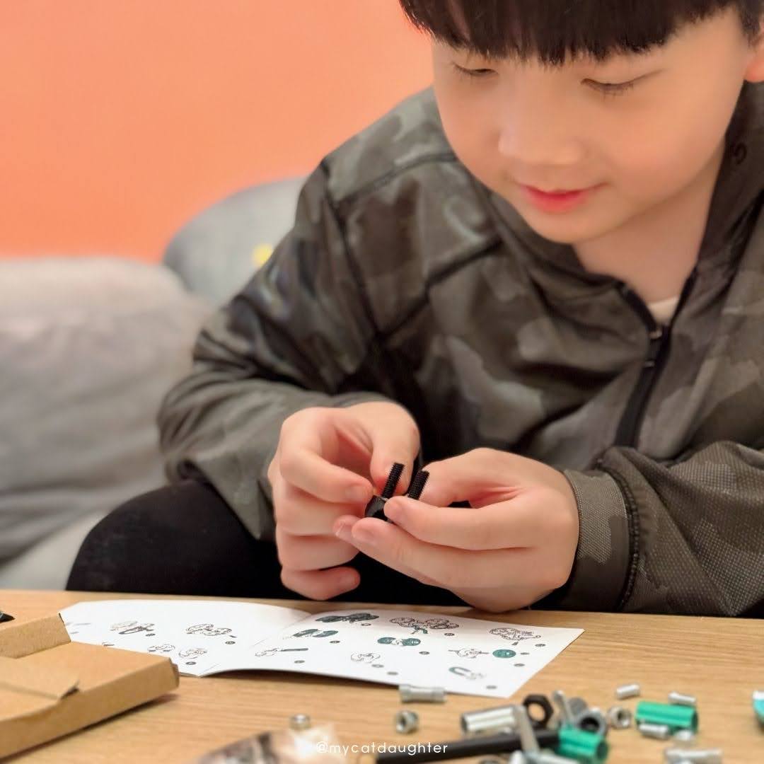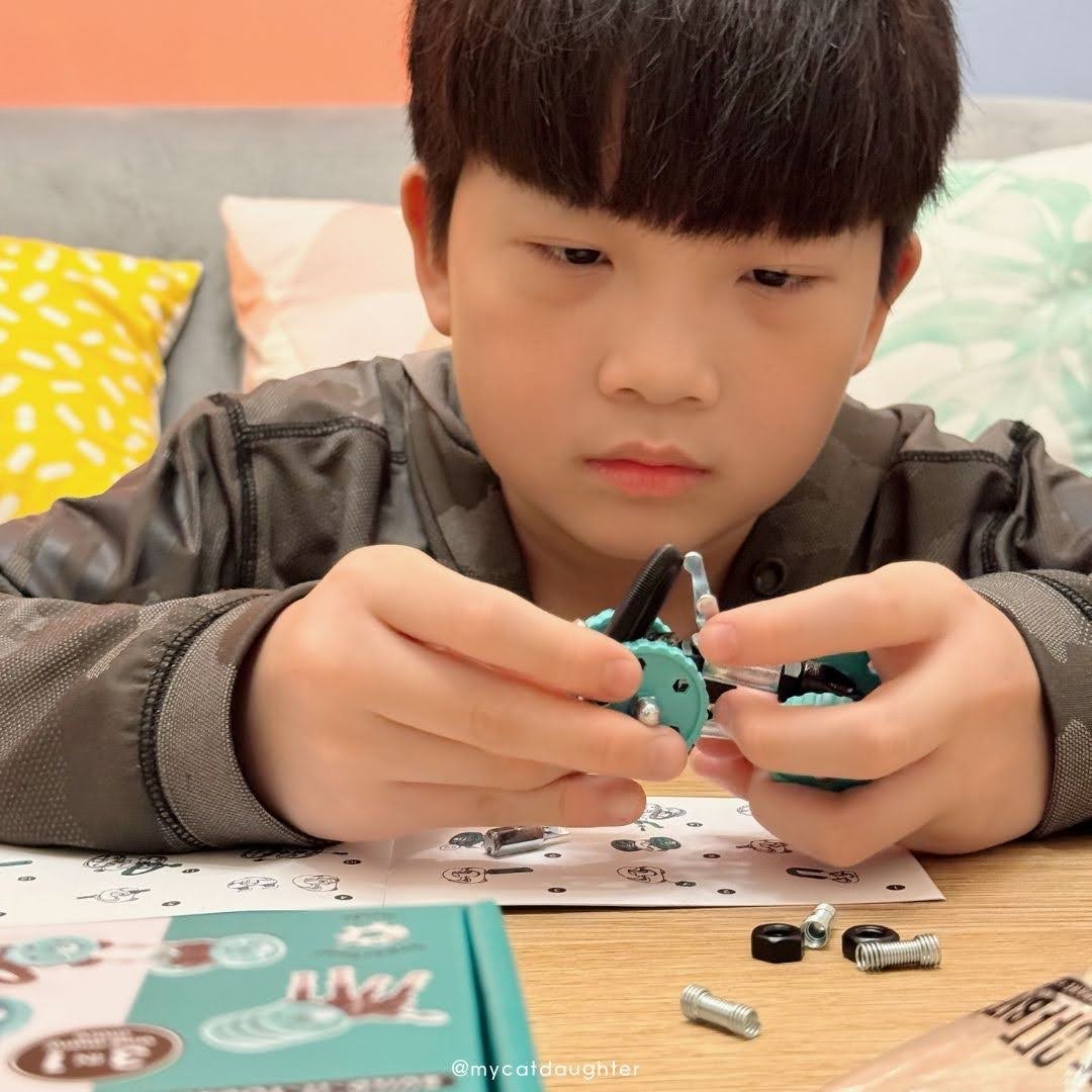 適合6歲以上使用 STEAM玩具,擁有普通兒童智商的小葛格已經10歲了,他看了一眼:「簡單,半個小時就可以組好。」