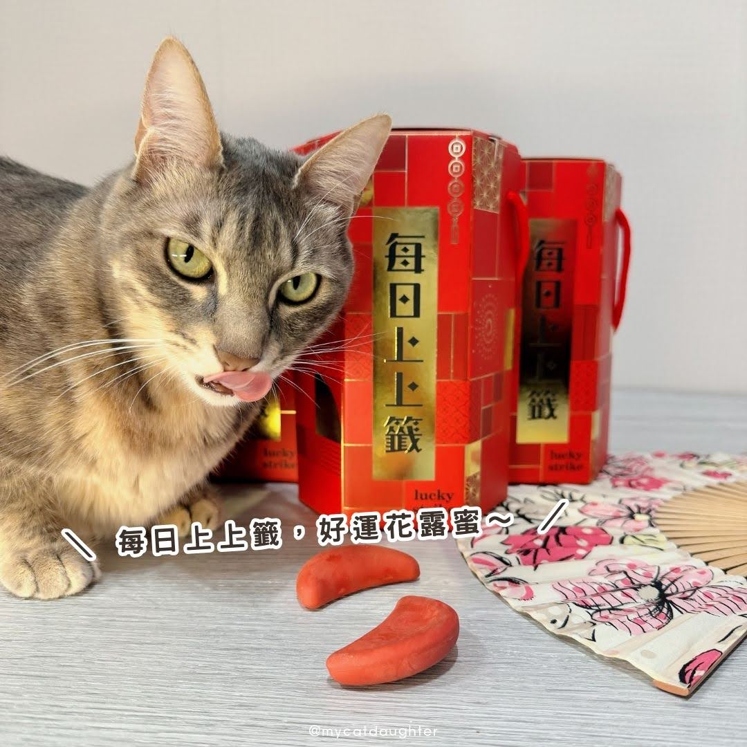 很快就收到宅配包裹,去廟裡拜拜抽籤要爻杯,我還把爻杯橡皮擦找出來跟小葛格兩個人玩得不亦樂乎,LuLu看到我們在玩也湊過來,桌上一條一條的包裝LuLu還咩咩一直撒嬌,她以為有好多肉泥啦!