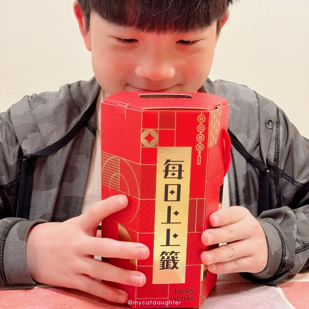 「每日上上籤」好運當頭籤桶是紅色六角形禮盒設計,並獲得花蓮百大伴手禮優等獎的殊榮!