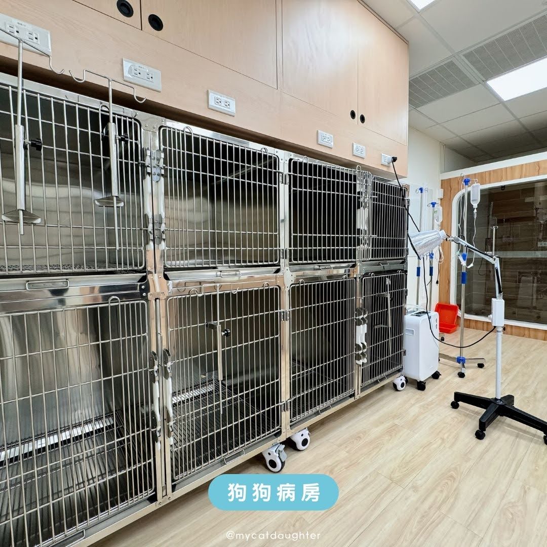 狗狗區的病房可以接待小型犬、中型犬、大型犬,有兩間像是浴室玻璃門的隔間病房就是為了大型犬特別規劃的唷!