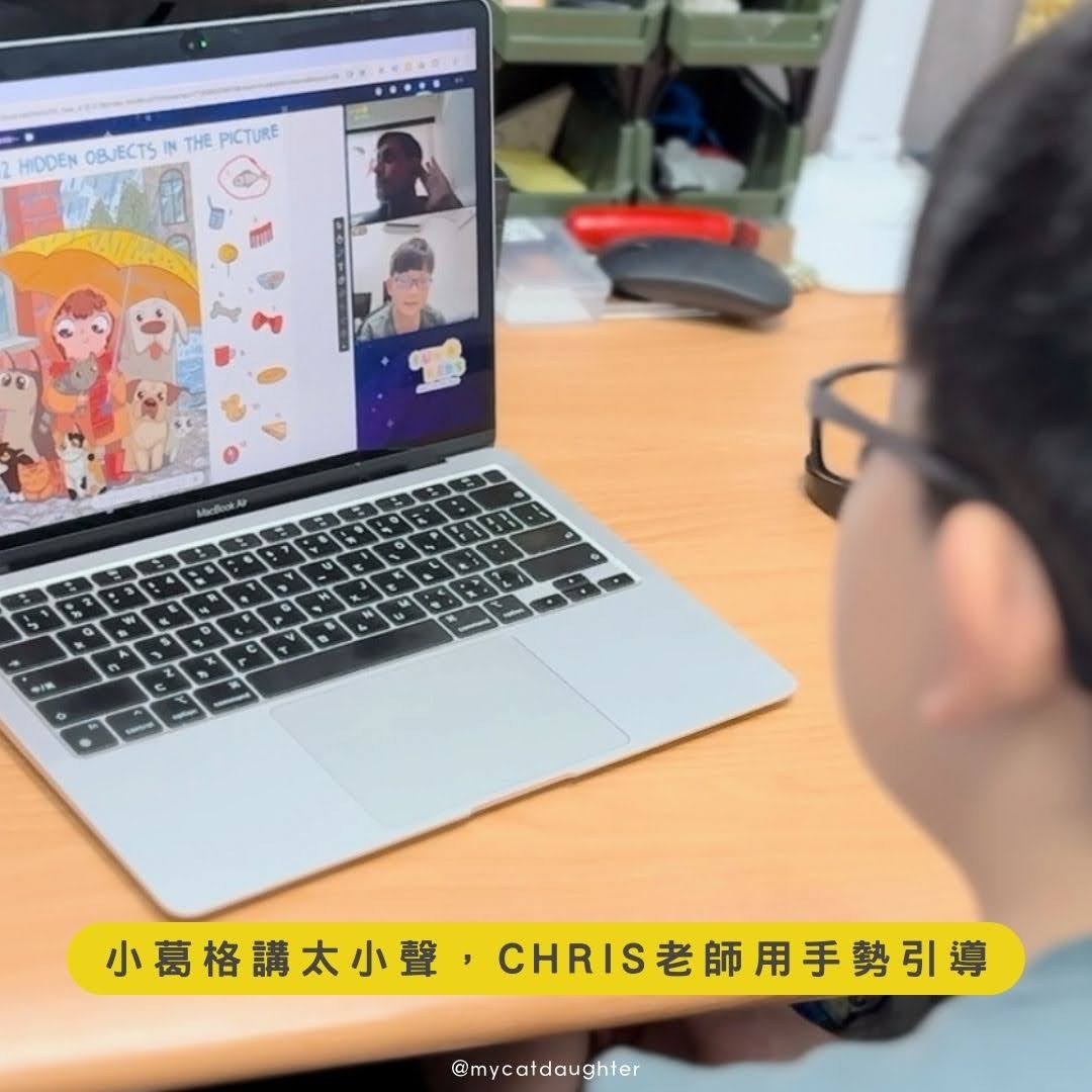 我們後來自己到官網看Chris老師的經歷,他來自美國,是明尼蘇達大學應用經濟學畢業,並取得CELTA英國劍橋大學教師證書、TEFL國際教師證,曾在各國教授英文,擁有豐富的實體及線上教學經驗,難怪可以在短短的25分鐘,引導小葛格沉浸在美語教學互動。