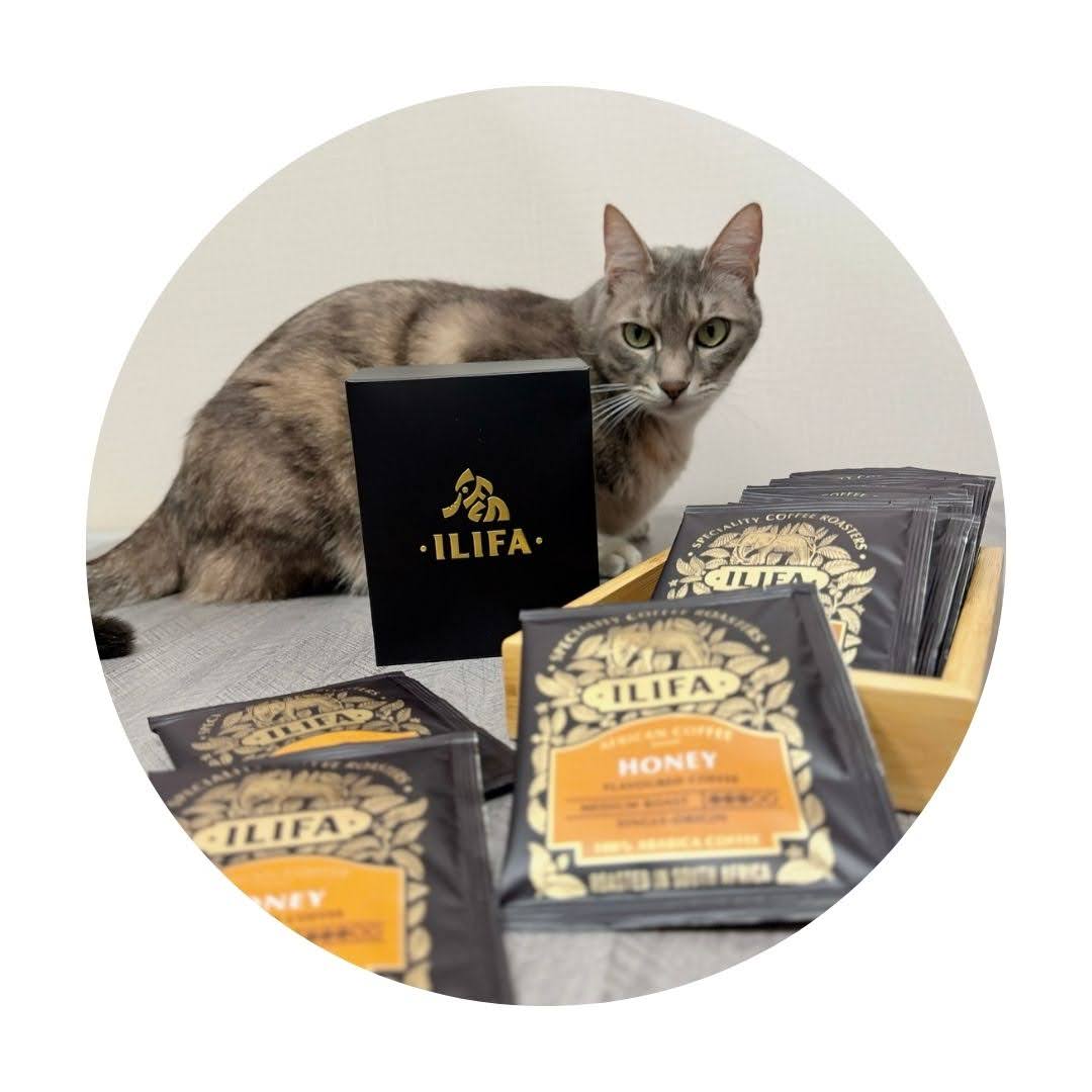 ILIFA品牌注重人們和大自然與動物們共存的生活型態,並且幫助當地小農,簡化供應鏈,創造出一款真正喝得出味道的咖啡濾掛包,每次沖ILIFA 非洲蜂蜜咖啡濾掛包,LuLu就會偷偷靠近,想聞聞看咖啡的味道。