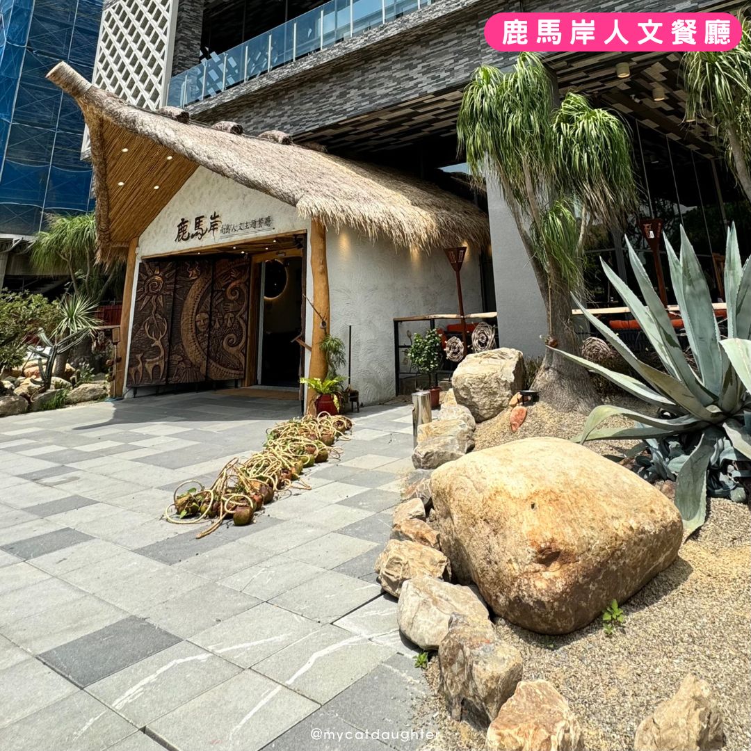 搭電梯上去,就看到十足原住民風格的「鹿馬岸人文餐廳」,還沒到用餐時間店內已經很多客人,特定時段用餐還有原住民歌手LIVE演唱表演,享用美食圖時也感受到獨特的原住民文化氛圍;為什麼美麗的餐廳門口會擺放著一堆椰子殼?店家發起一個 #椰綠友善循環計畫,把椰子殼曬乾就是一個帶有異國風情的植栽容器啦!