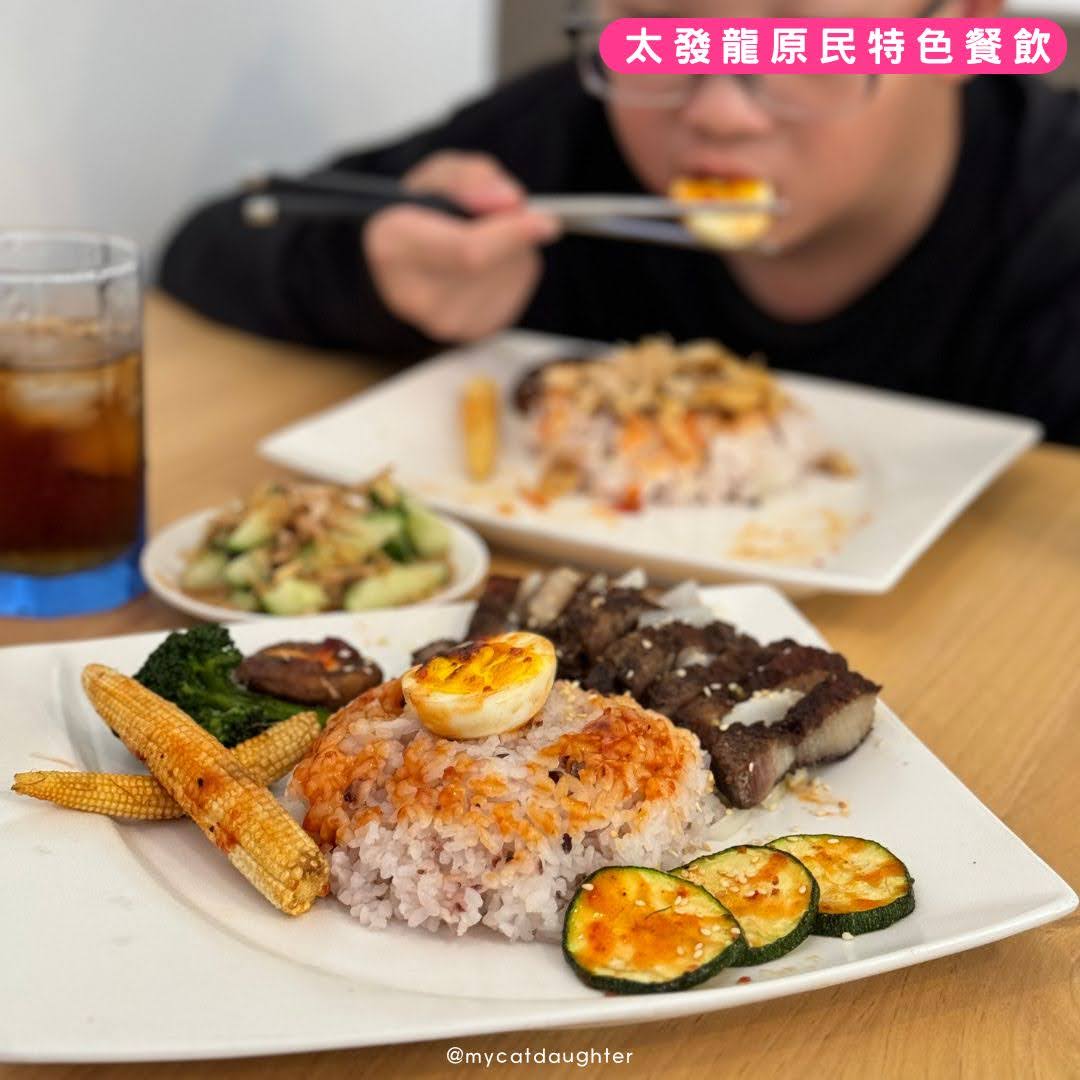 還在逛攤位上的手作包包,小葛格跟拔拔已經消費滿額幫我換好一份貓頭鷹娃娃吊飾DIY,看他們狂吃狂喝我也有點餓了,離DIY還有一點時間,先到「太發龍原民特色餐飲」簡單的用午餐吧!
