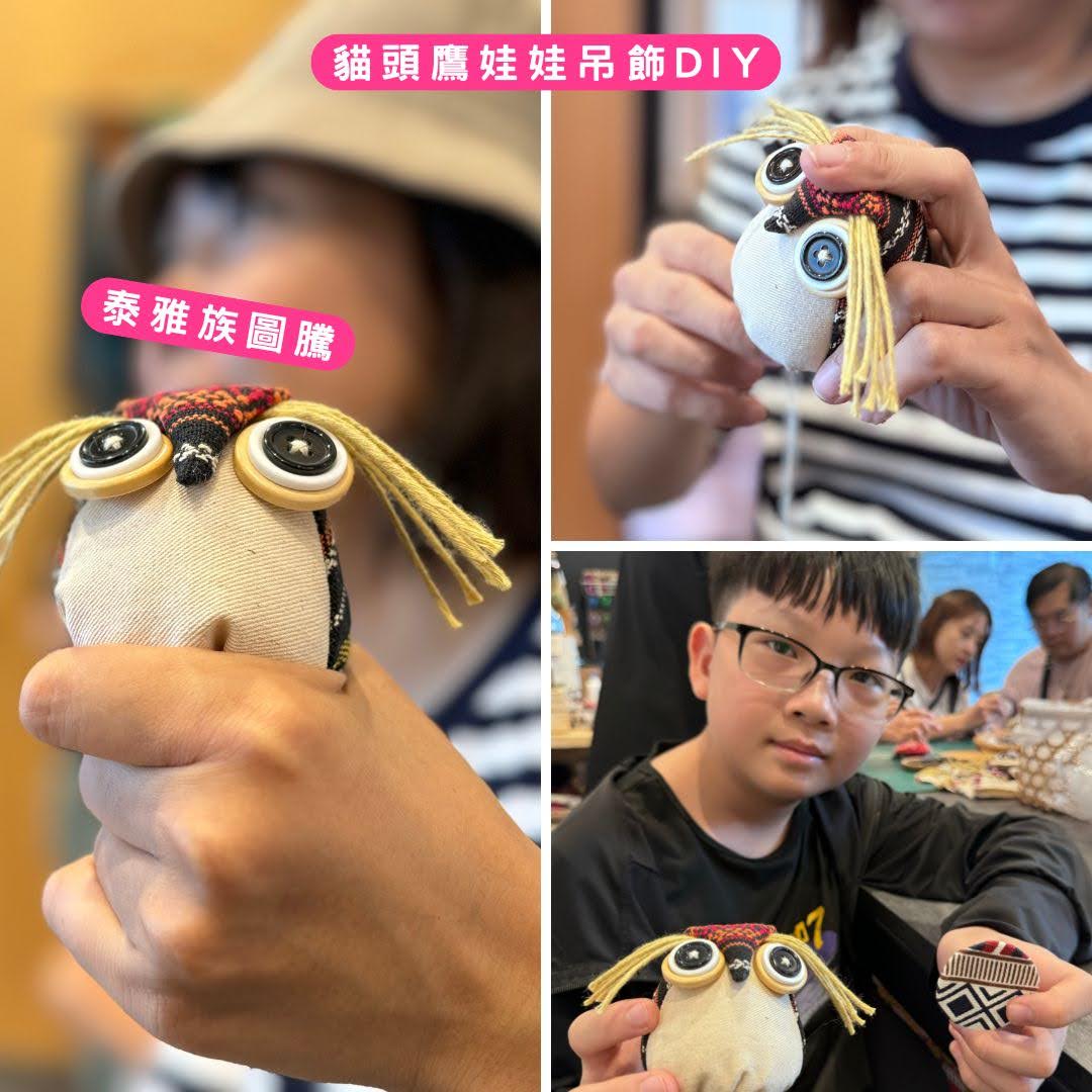 我跟小葛格先到二樓的「從前從前手作工坊」DIY,店裡兩隻親人的店狗柴犬熱情歡迎我們,原來這是一間#寵物友善店家 小葛格說:「LuLu下次也能來。」老師請我們挑選喜歡的布料,貓頭鷹的布料有分太魯閣族、泰雅族兩種,我挑了一隻黑色的貓頭鷹,是泰雅族的圖騰,然後就照著老師的教學,按部就班完成一隻胖嘟嘟的可愛貓頭鷹吊飾。
