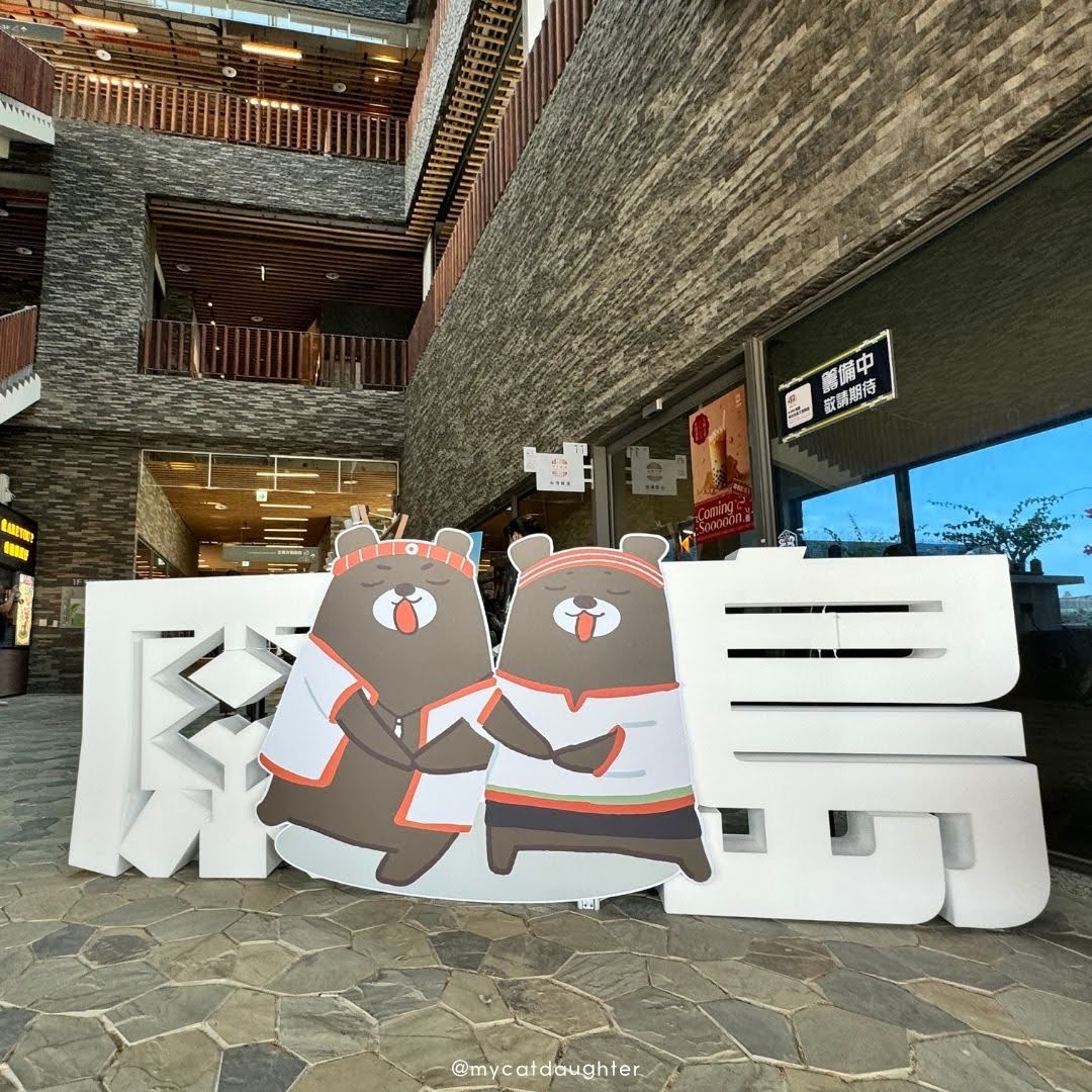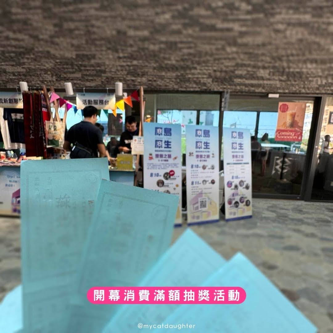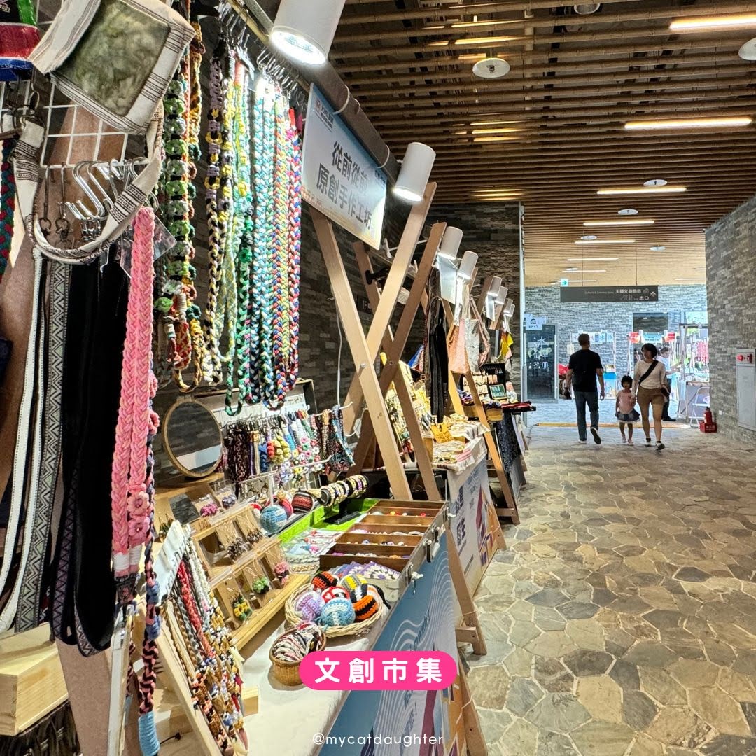 好多商店,我逛回到一樓,從遠方看到吃貨父子倆手上拿著雞蛋仔跟泰式奶茶,坐在廣場聽歌等我,台上演場的街頭藝人是阿甘、LUMA一曲堪稱原住民國歌的「海洋」,果真「原」汁「原」味,這兩人做完DIY了就到這裡吃小吃、喝飲料聽演唱真的很會享受。