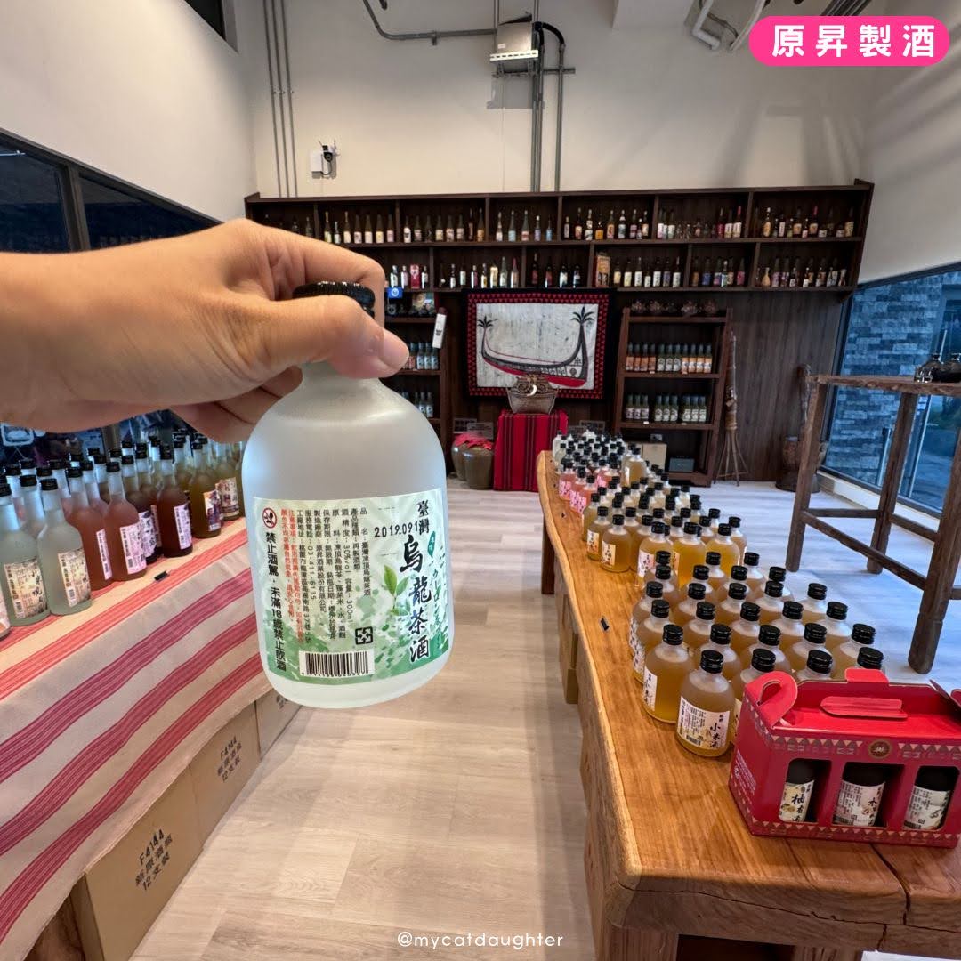 · 原昇製酒 #寵物友善 這家店居然也是來自龍潭,店內販售各式酒類,桌上展示一整排小瓶裝酒,店長介紹這些酒的度數都不同,我拿起一罐很有特色的「烏龍茶酒」,店長:「這瓶最高30%」就被我結帳帶回家了。