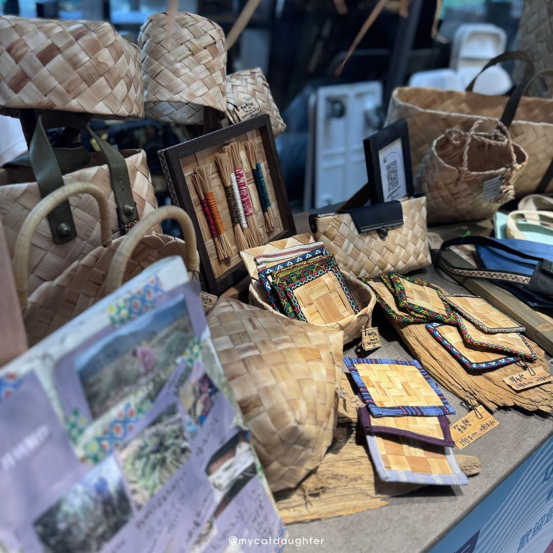 到服務台領了活動卡,我們就開始在一樓市集跟店家逛逛買買,我慢慢欣賞攤位上原住民的手作藝品;喜歡美食的小葛格跟拔拔趁我不注意溜去美食攤位,瞬間在手上多了幾樣小吃:山豬肉、水蜜桃冰沙…