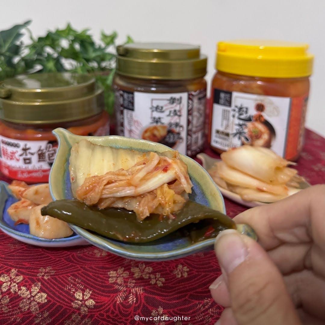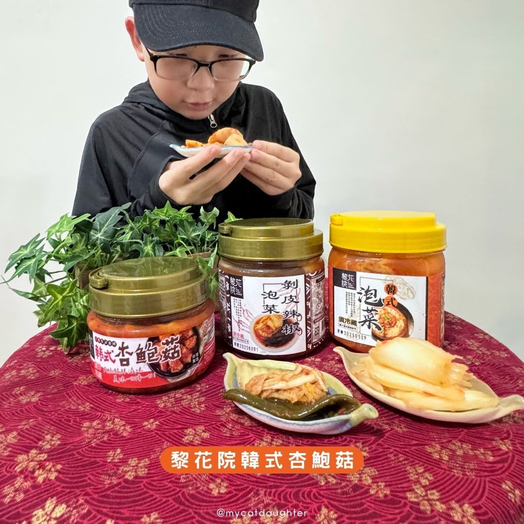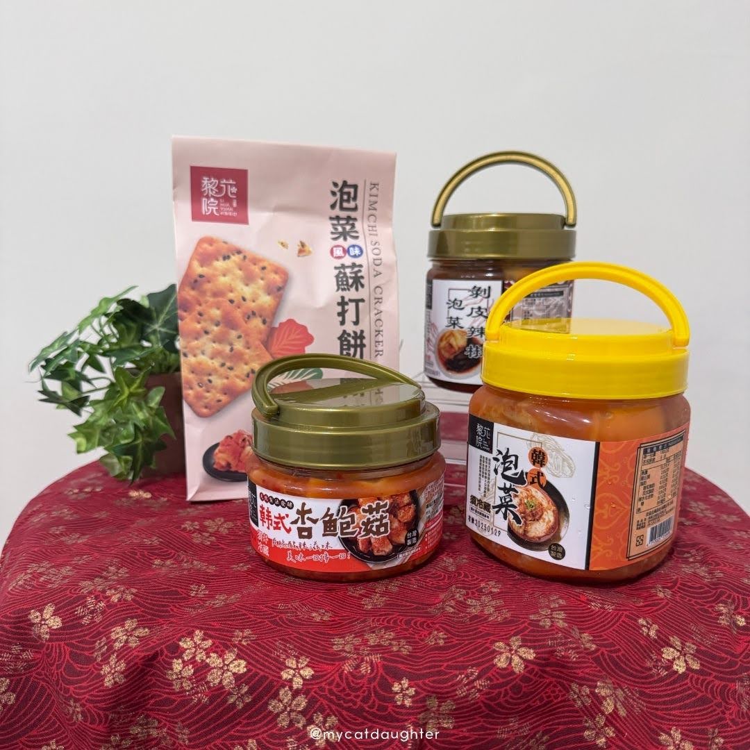 這次開箱的黎花院系列產品(韓式泡菜+剝皮辣椒泡菜+韓式杏鮑菇+泡菜風味蘇打餅)就是之前吃過的品牌。
