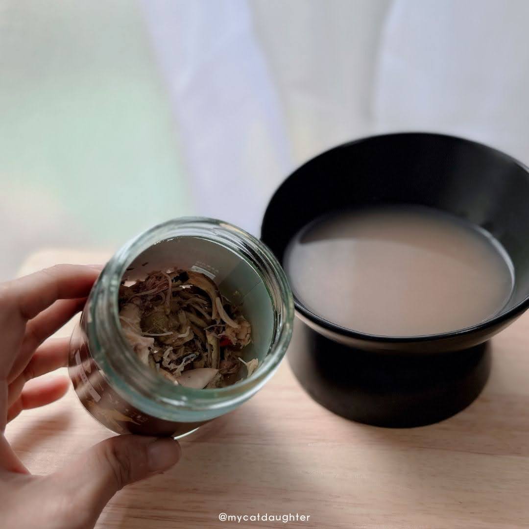 吃飯大師干貝醬有使用特殊處理去除鹹味,100g的鈉含量是228.9mg,可別一次倒一大碗,建議適量給予犬貓食用,畢竟我們人類也不會把干貝醬當正餐吃!家裡毛孩喜歡喝有味道的水,也可以把濃縮海鮮精華高湯用製冰盒凍起來,日後方便分批次兌水,兌水的比例大概可以這樣抓:每次一湯匙的干貝醬高湯,兌十湯匙的水。