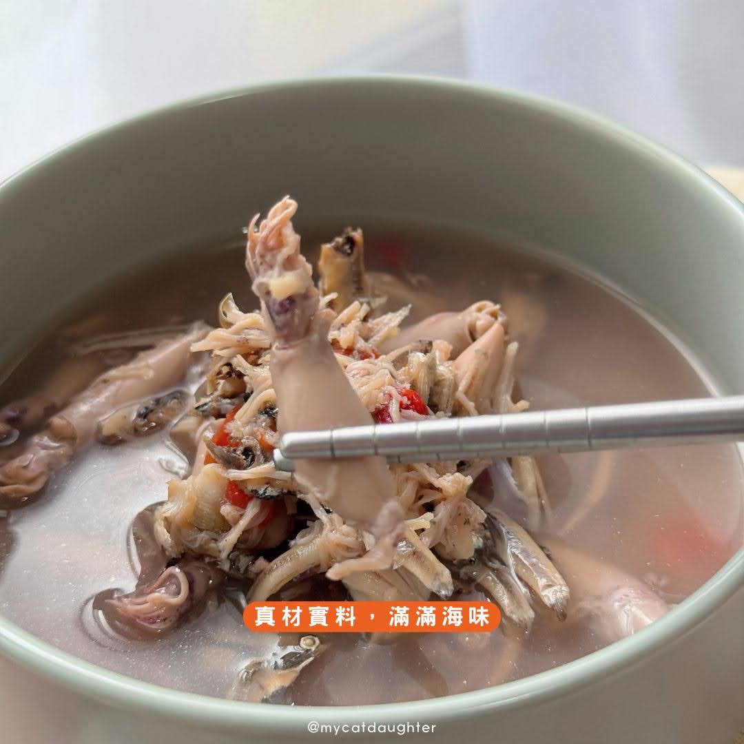 每罐200g,打開蓋子就聞到海鮮高湯的香氣,舀一勺:干貝絲、小管、小魚乾、海瓜子、紅椒,料也太高級了吧!特殊處理去除鹹味,適合用在季節交替、食慾不振時,幫罐罐、濕食類主食增添風味,或用當成副食補水適量給予。