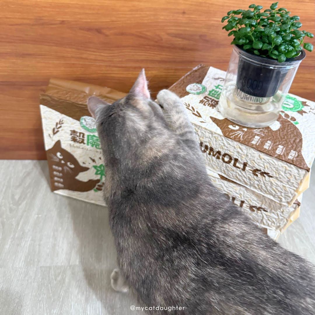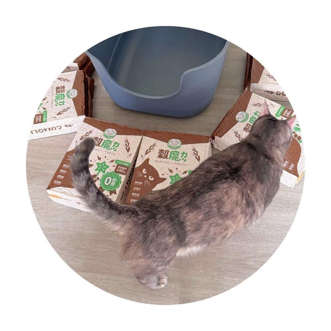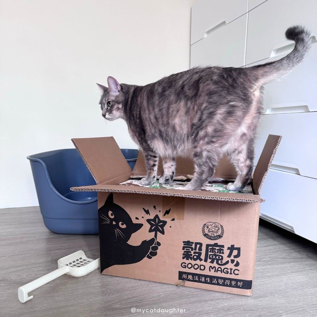 我收到【穀魔力】稻穀纖維貓砂時剛好是早上,GUMOLI 穀魔力Good Morrning,是諧音梗嗎?一早就把我逗笑,真有趣。