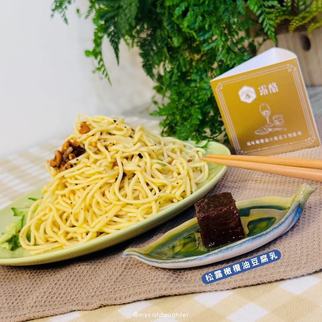 既然早上開箱一盒宜蘭特色伴手禮,那中午接著就拆另外一盒吧!【松露橄欖油豆腐乳】(純素),光聽名字就覺得高級,冰了一晚的涼麵有點乾硬,先淋上涼麵醬汁,放在室溫回溫一下,再淋上松露橄欖油,最後拌入一點露橄欖油豆腐乳,沒想到我居然讓隔夜涼麵起死回生了!當我愉悅的吃著【松露橄欖油豆腐乳佐隔夜涼麵】,吃完泡麵的小葛格又走到書房問我:「媽咪,妳又在吃什麼?」