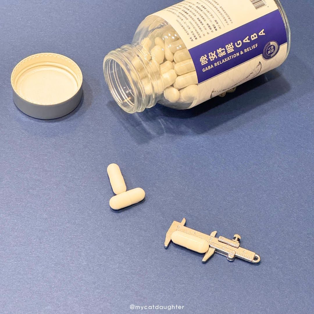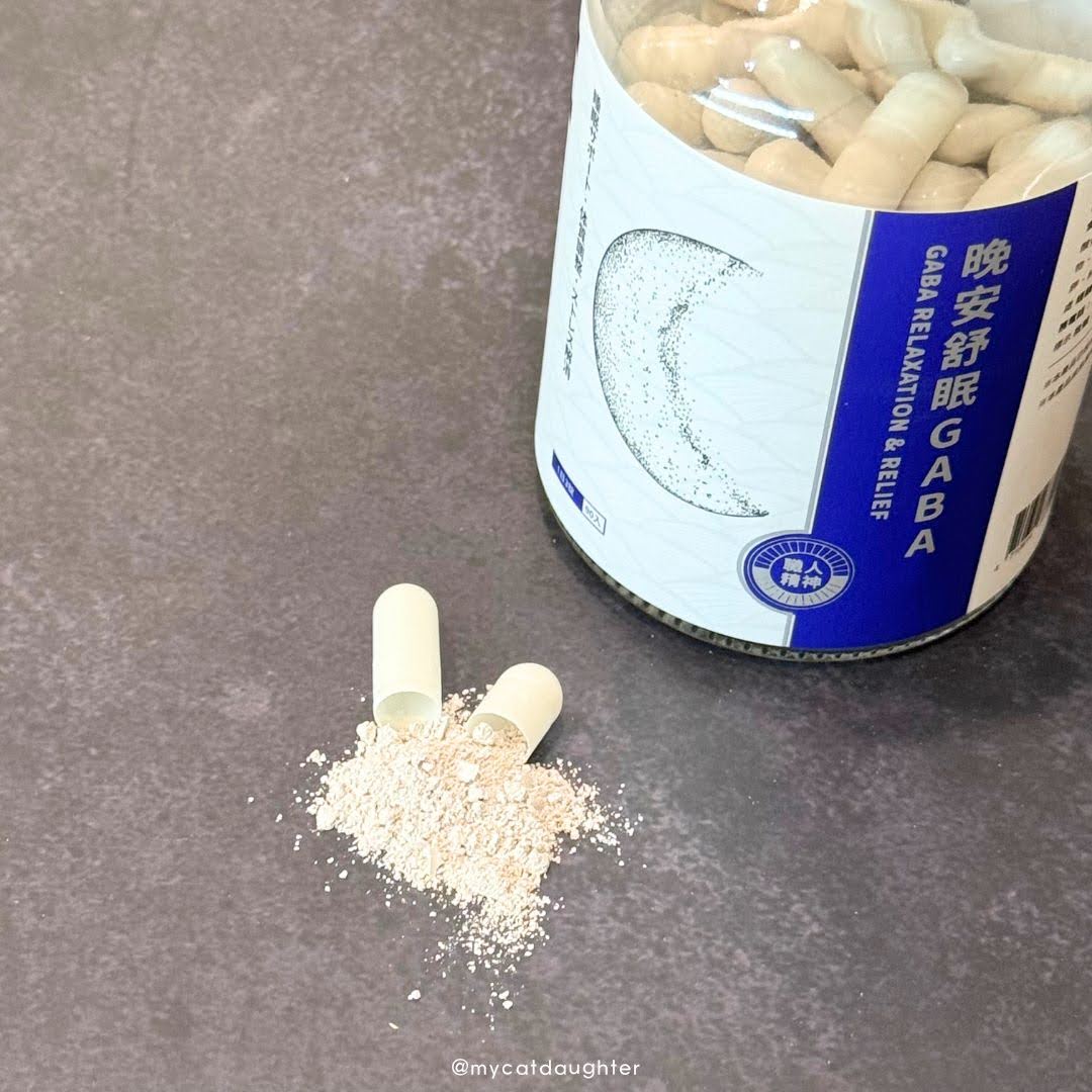 GABA怎麼吃?六大營養素是粉末狀,用2公分左右的白色膠囊包裹,劑量固定且方便服用,每次服用至多三粒,多食無益唷!我是睡前倒一杯溫開水,一次吞一顆膠囊,如果不太會吞膠囊,也可以把膠囊剝開倒出營養素粉末,粉膜嚐起來跟我們常吃的鈣片鎂片味道很像,但是帶有一點草本植物的味道,好入口不會苦。