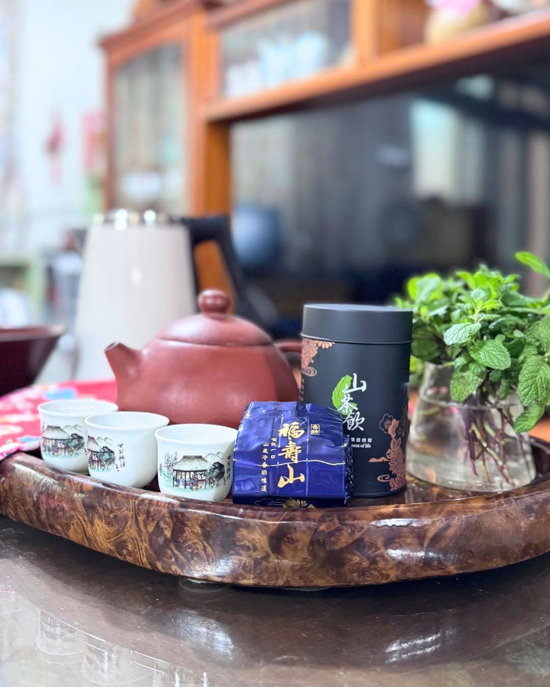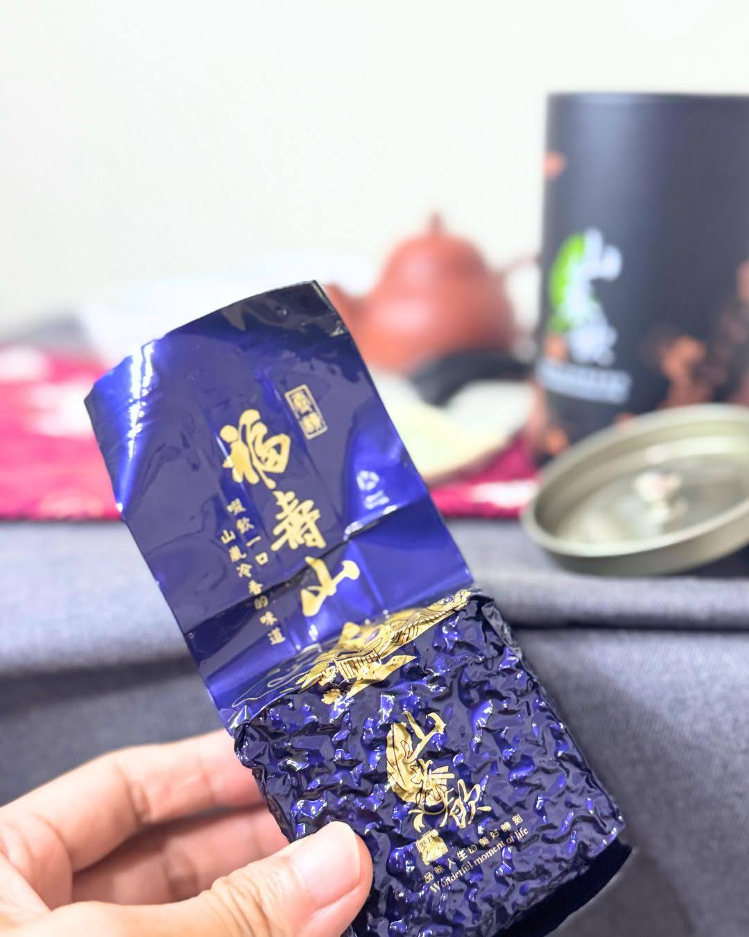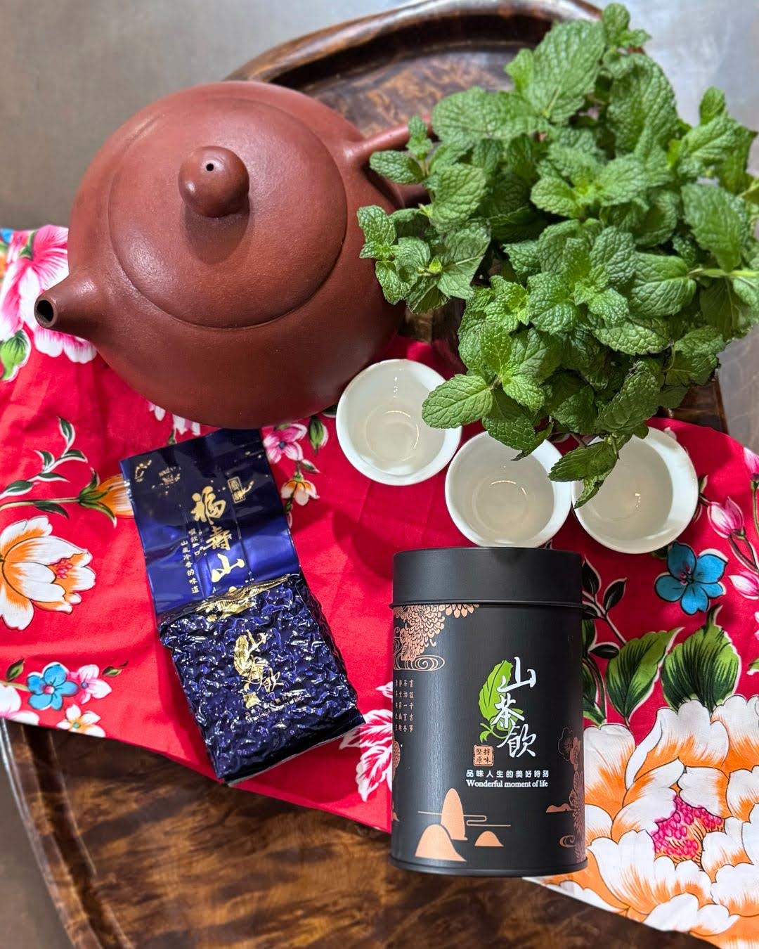 霧面質感的黑罐中,是來自福壽山農場邊緣自家茶園的茶葉,密封包裝保鮮、完整呈現風味。山茶飲從茶園管理、採摘、製茶到包裝,皆採「一條龍」自營模式,並擁有生產履歷認證,是優質的MIT台灣茶代表。