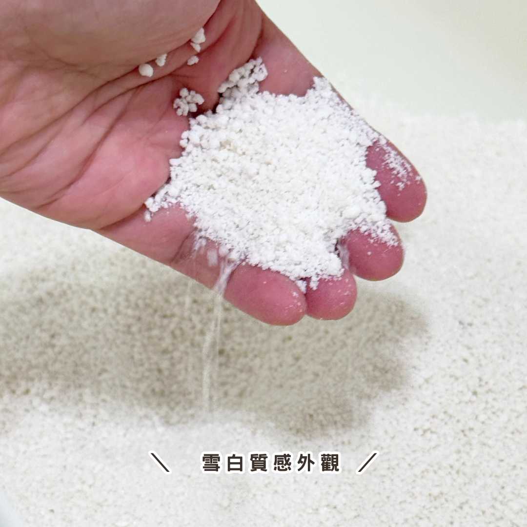 咦?這是……木薯貓砂?跟我以前用過的完全不一樣!摸起來像海灘上的白砂,又有點像園藝用的珍珠石。
