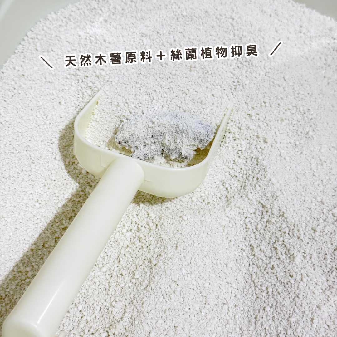 採用天然木薯原料製成,不加香精、不含瓜爾膠,溫和無刺激,守護貓咪健康;以天然絲蘭植物高效抑臭,夏天放在悶熱走廊連用七天,走過路過貓砂盆,都聞不太到屎尿味;就算是 LuLu 剛上完廁所,氣味控制也勝過其他種類貓砂。以前我靠味道判斷 LuLu 有沒有上廁所,現在幾乎聞不到,唯有靠砂量來判斷。