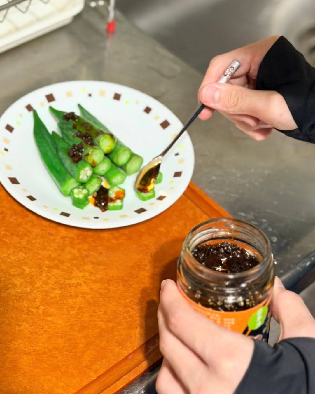 我們家吃秋葵不再只會沾醬油,一匙香菇拌醬讓蔬菜更好吃。