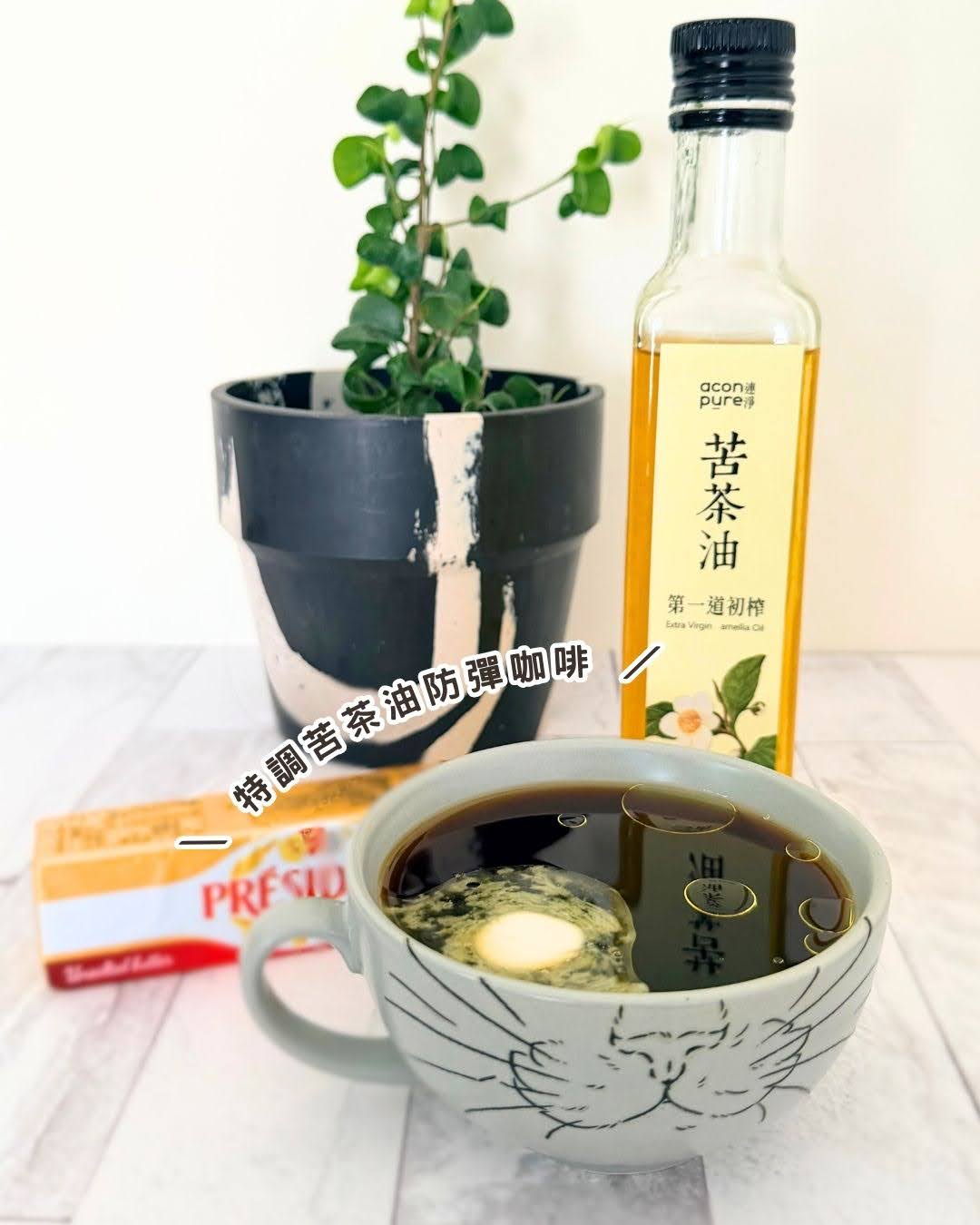 早晨,為自己特調一杯苦茶油防彈咖啡,天然的苦茶油調和絲滑無鹽奶油,油脂中和了咖啡的苦澀,調和了香氣,為美好的一天揭開序幕。