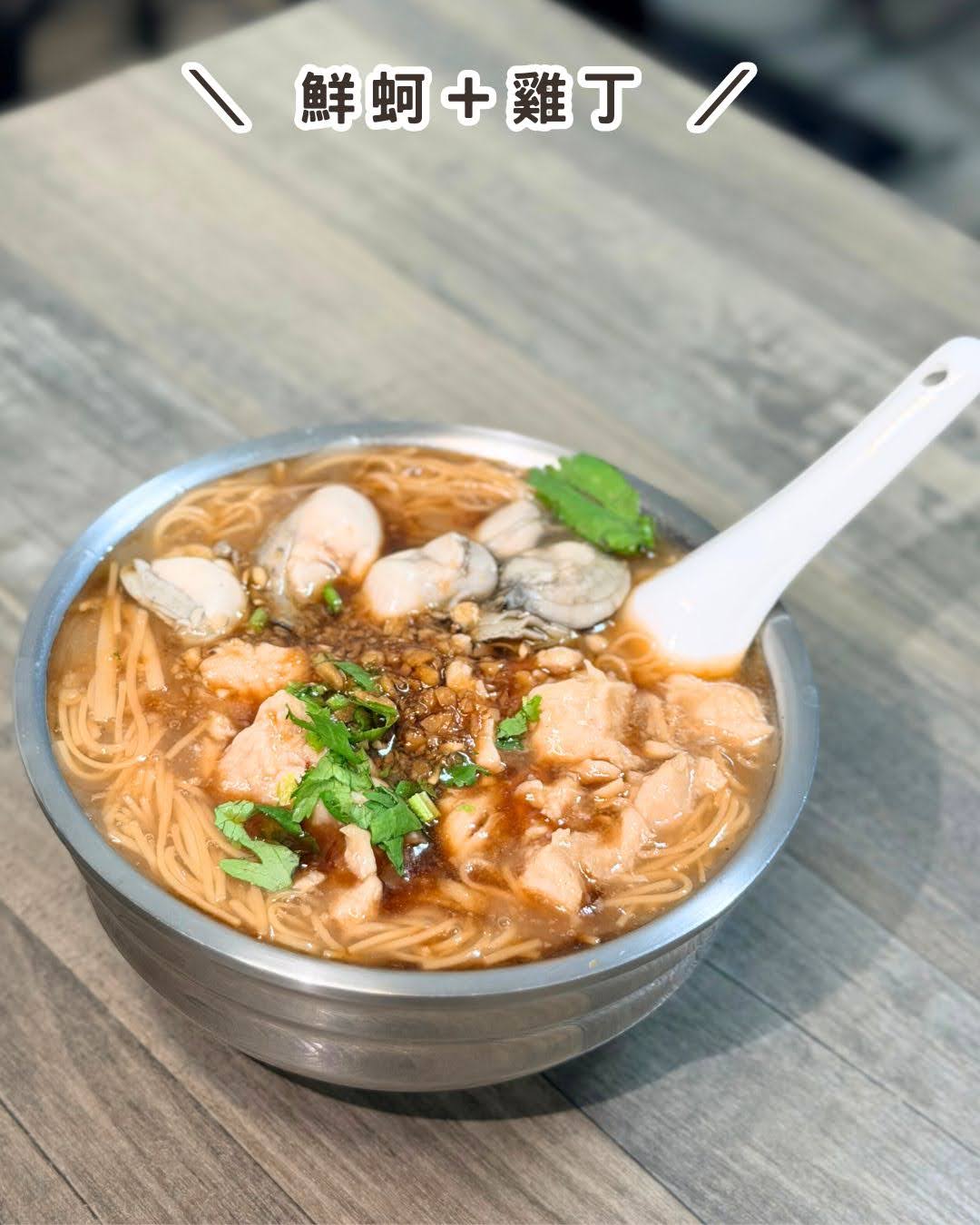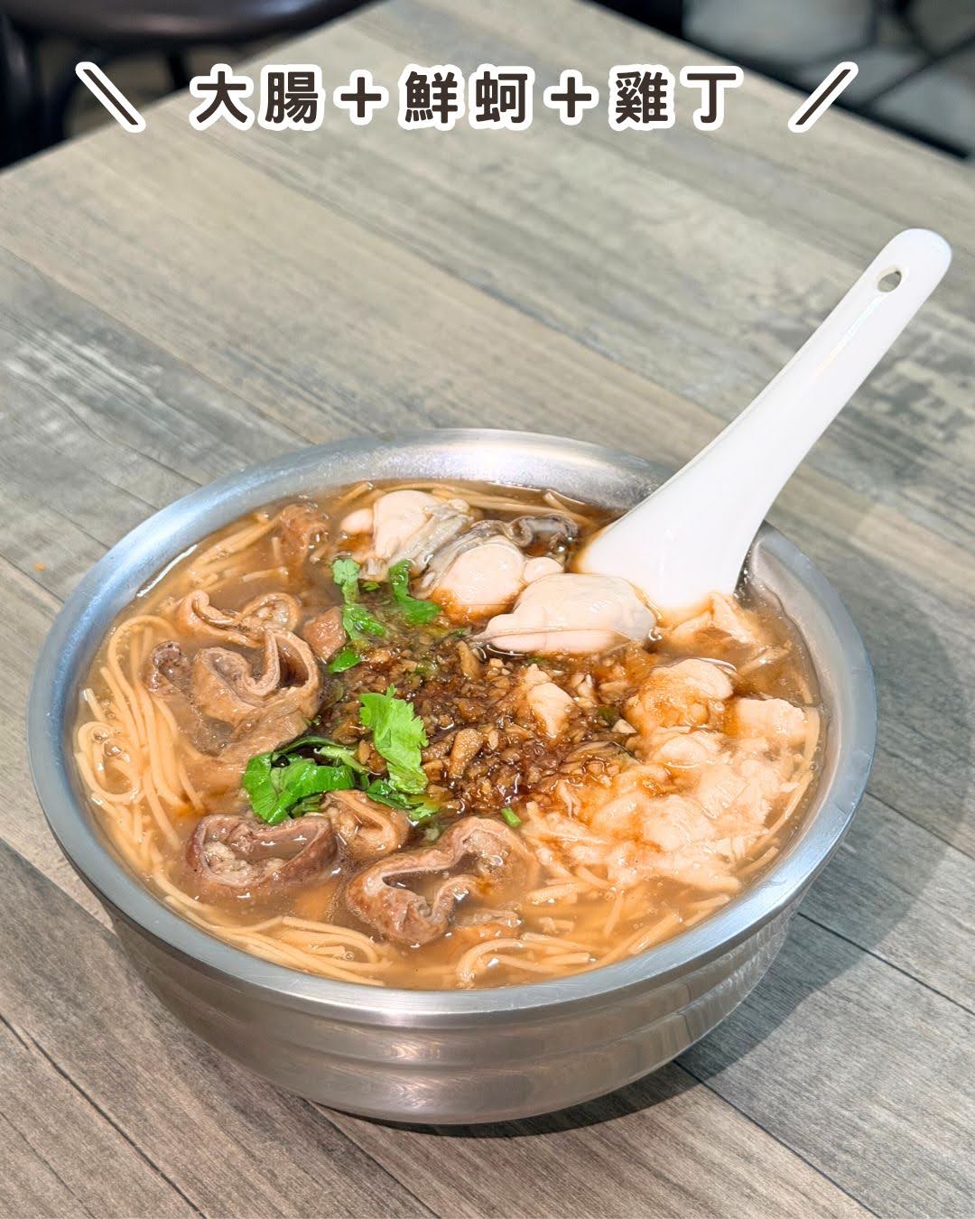 朋友吃〈大腸+鮮蚵+雞丁〉:「蒜香超濃又不嗆,料多實在;大腸沒有腥味,彈牙不軟爛。」