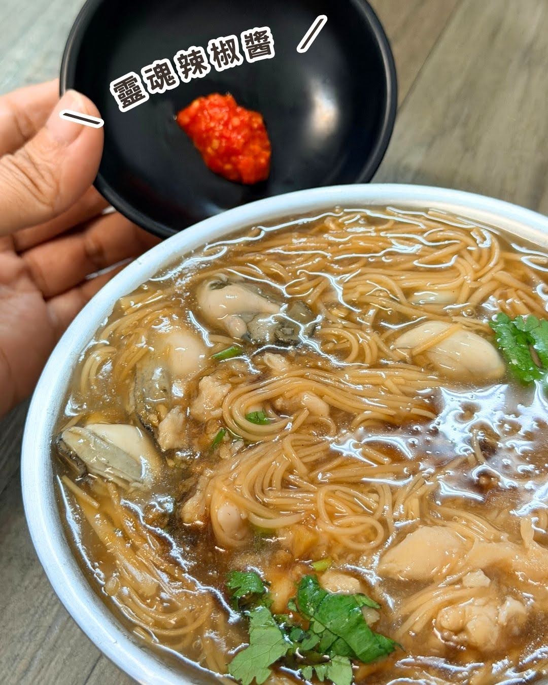 吃到一半我想加辣,跟老闆要了一小匙,老闆用小碟子裝給我。沒想到加了特製的『靈魂辣椒』香氣四溢、微辣不嗆,融進濃稠麵線湯汁裡,讓麵線的層次更豐富,瞬間喚醒味蕾,以後來吃一定要加微辣!