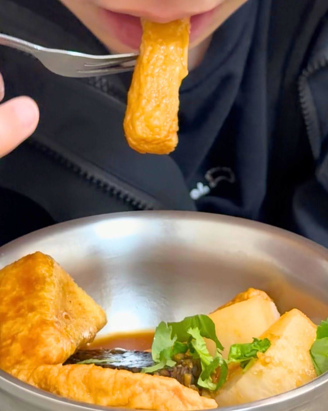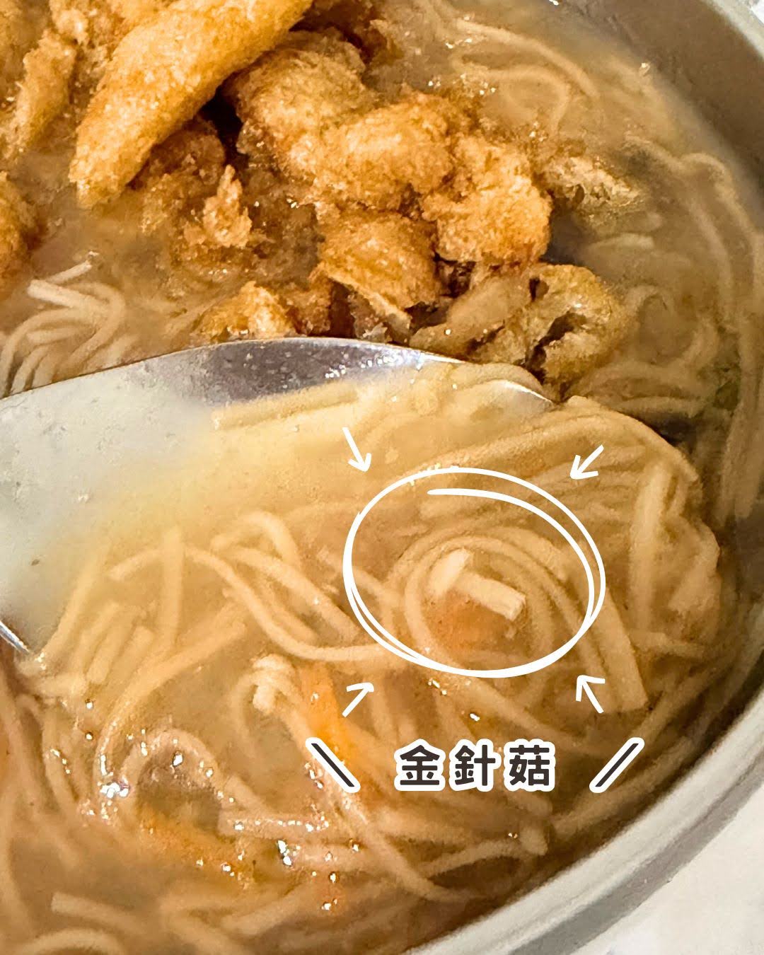 素魚酥單吃的口感很像老油條,吸飽湯汁變得口感滑順好吃。素麵線裡還吃到金針菇,口感調味跟清麵線幾乎一樣,以後週一無肉日,來碗素麵線清爽無負擔。