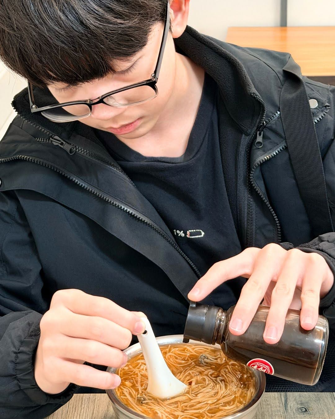 他愛加醋、不愛香菜,還額外加了不少醋。