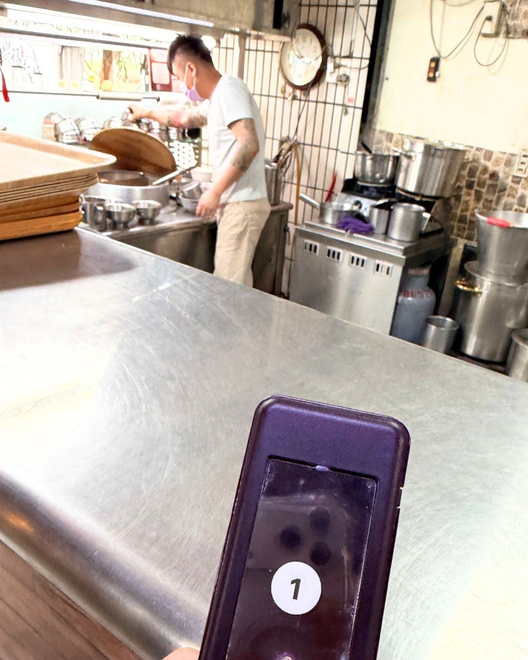 內用點餐+付款 → 等呼叫器震動 → 自行取餐 → 吃完再自行放回櫃檯;流程清楚又有效率,難怪裡裡外外只有老闆一個人也能忙得過來!