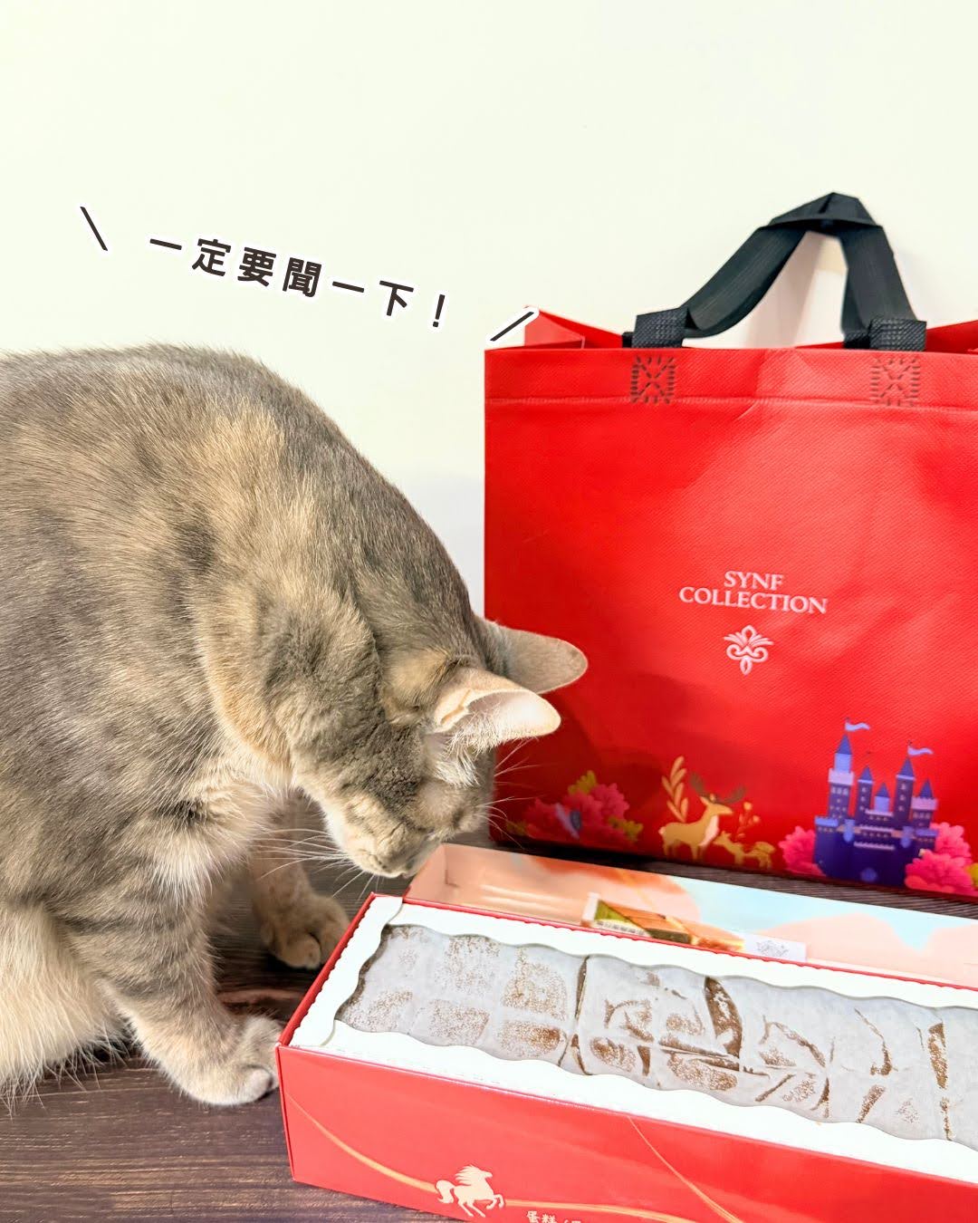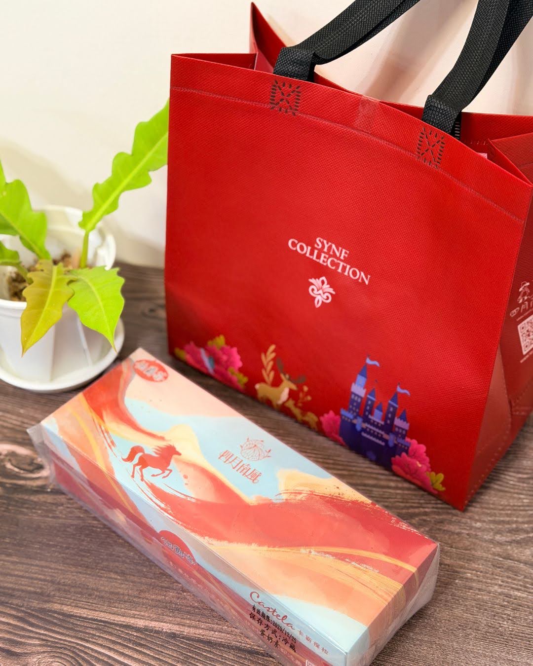 回到家,打開保冷袋,拿出一只紅色提袋,映入眼簾的是馬年設計的伯爵茶蛋糕,紙盒色彩繽紛大器,外層還套著透明密封塑膠袋,上面清楚印著有效期限、蛋奶素以及保存方式:冷藏字樣,層層包裝與提醒讓人安心。