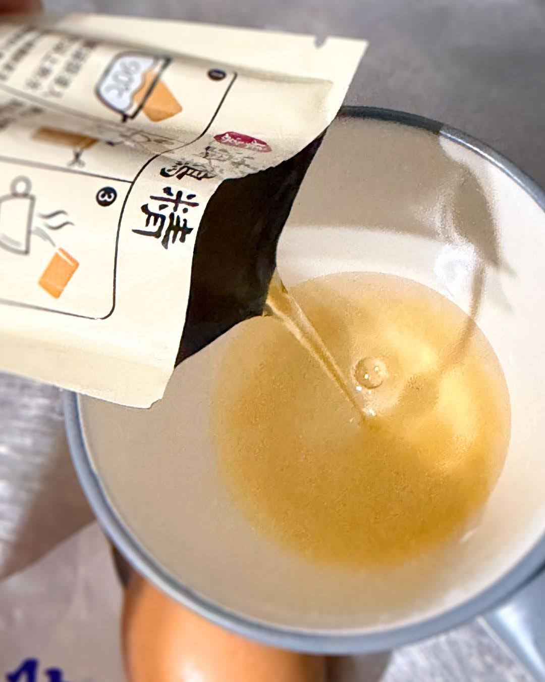 常溫滴雞精喝的方式很容易,熱水浸泡三分鐘,拆封即可熱熱喝。每隻雞只能製作 2.5 包的滴雞精,滿滿膠質精華、真材實料,沒有腥味,口感濃醇香,大葛格喝得非常滿意。
